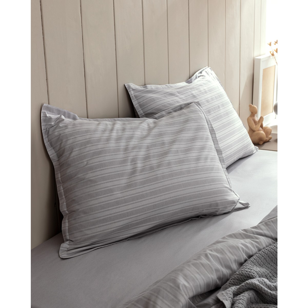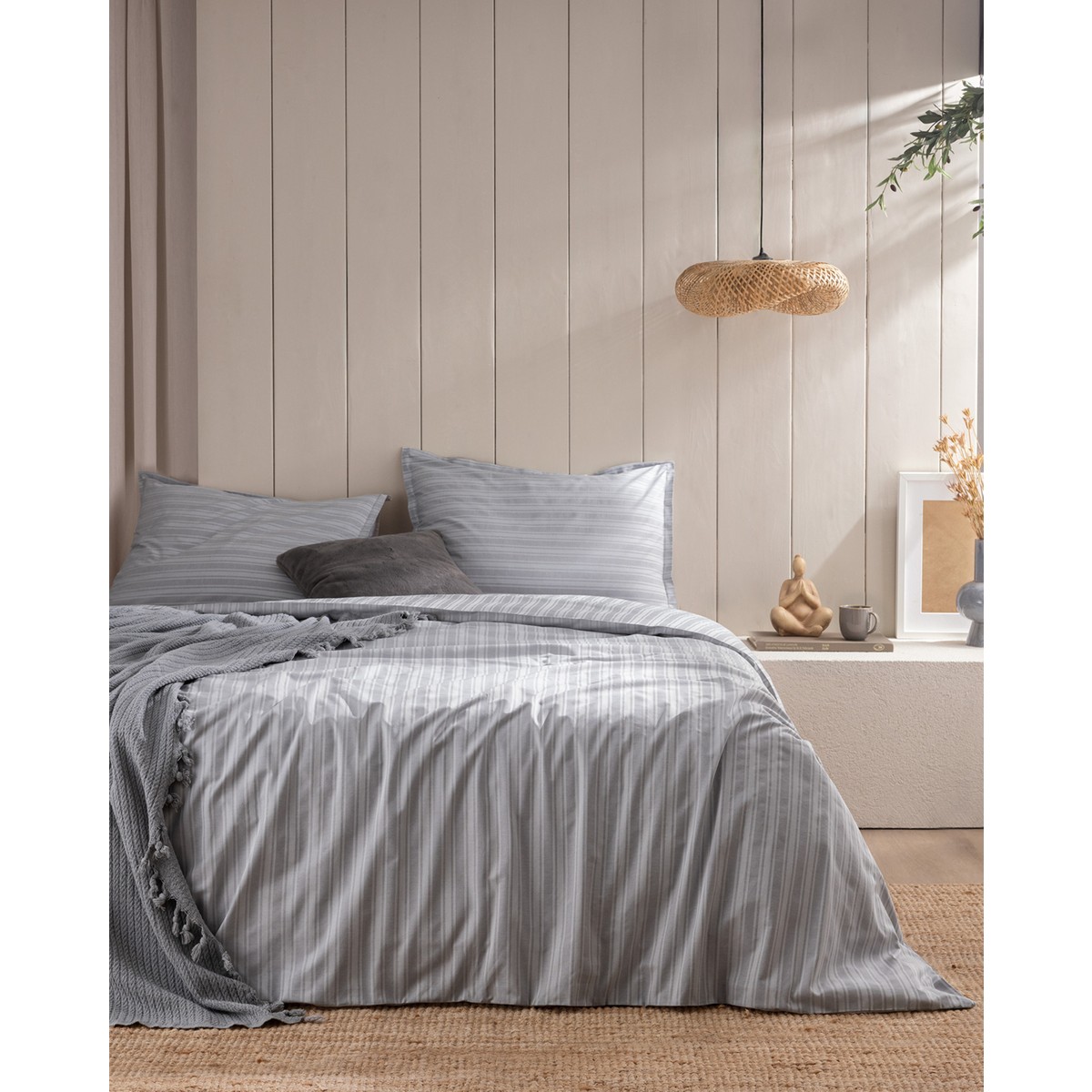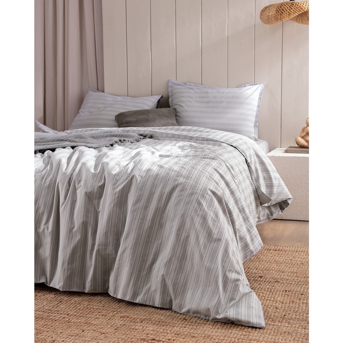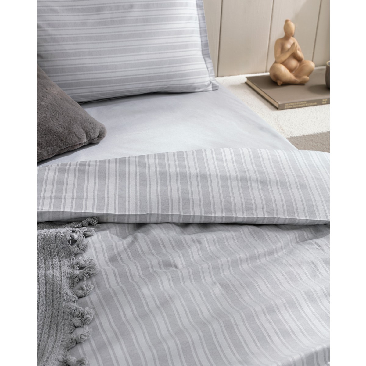 Melicia Tek Kişilik Pamuklu Çizgili Saten Nevresim Takımı – Gri