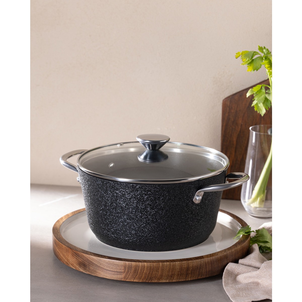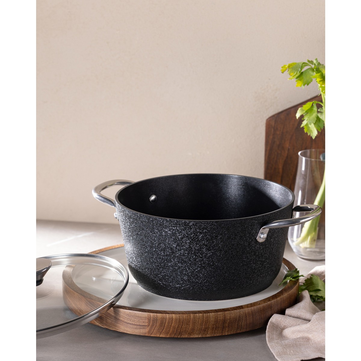 Noir Titanyum Derin Tencere – Siyah – 22 cm