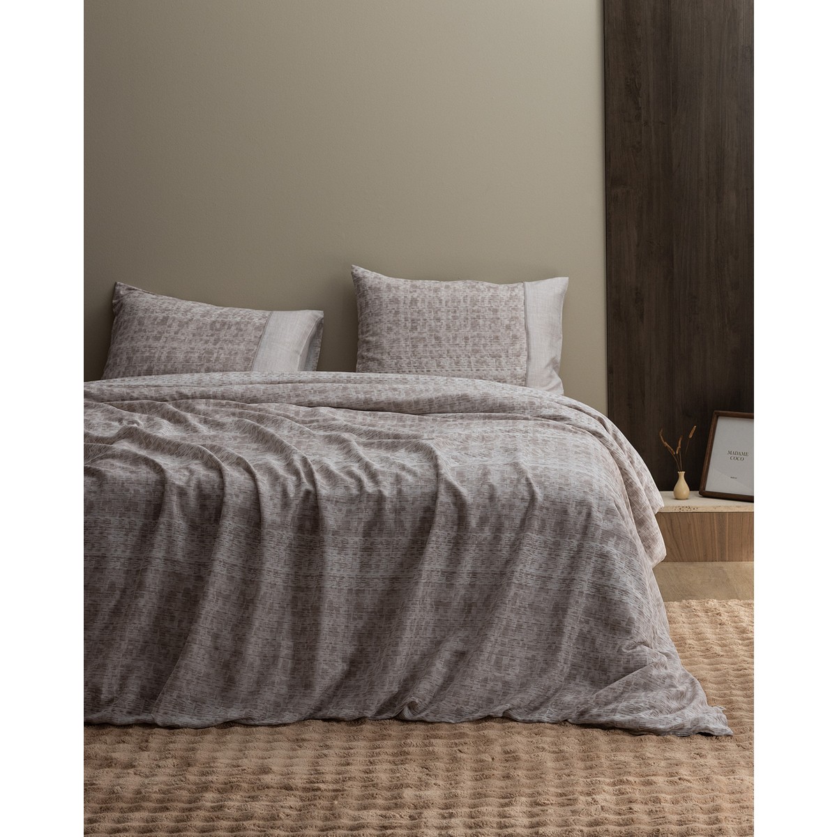 Madame Coco Petrus Tek Kişilik %100 Pamuk Madame Coco Crep Baskılı Nevresim Takımı – Bej