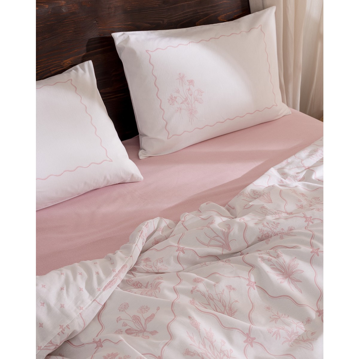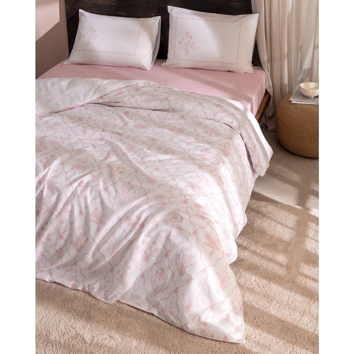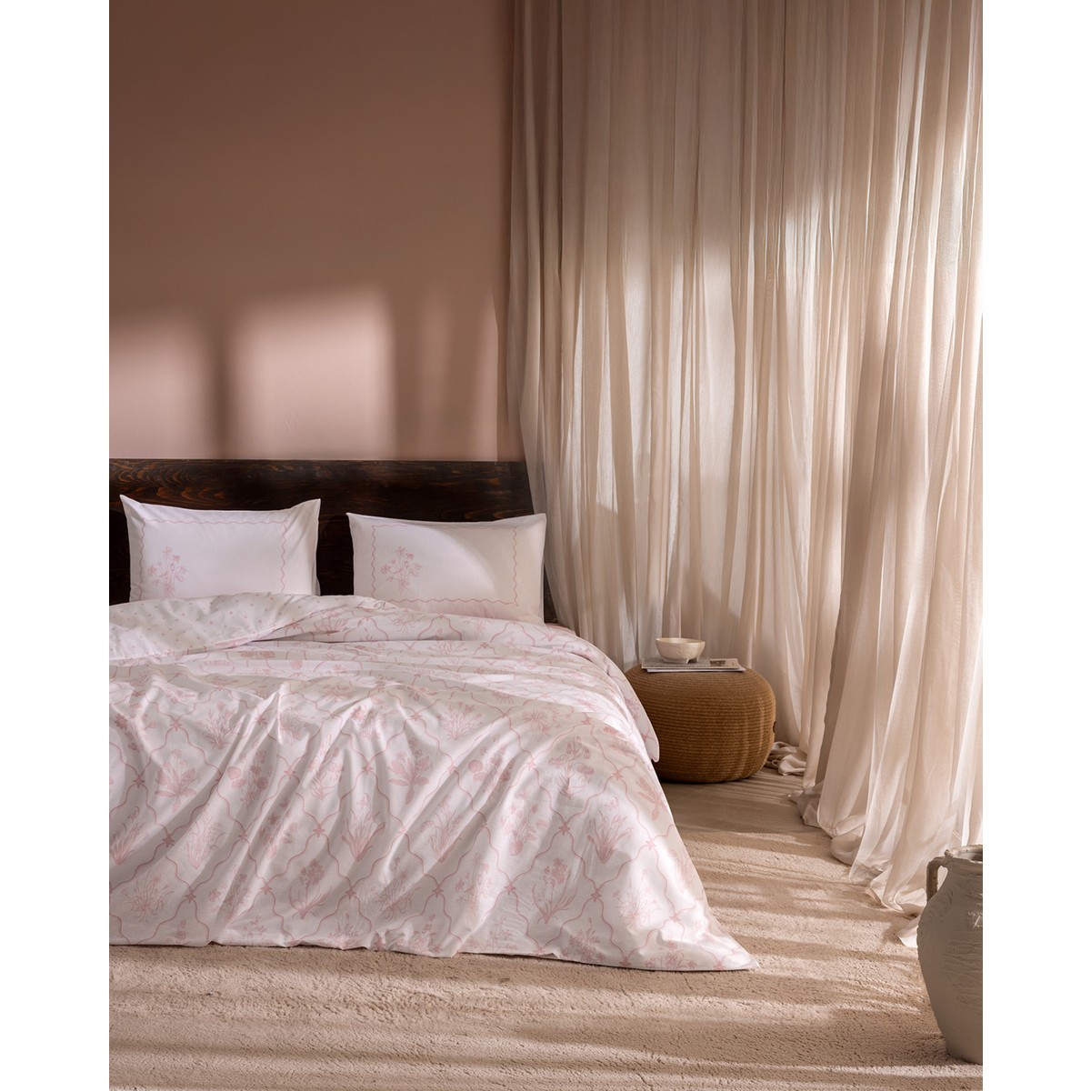 Rotule Tek Kişilik %100 Pamuk Ranforce Nakışlı Nevresim Takımı – Pudra