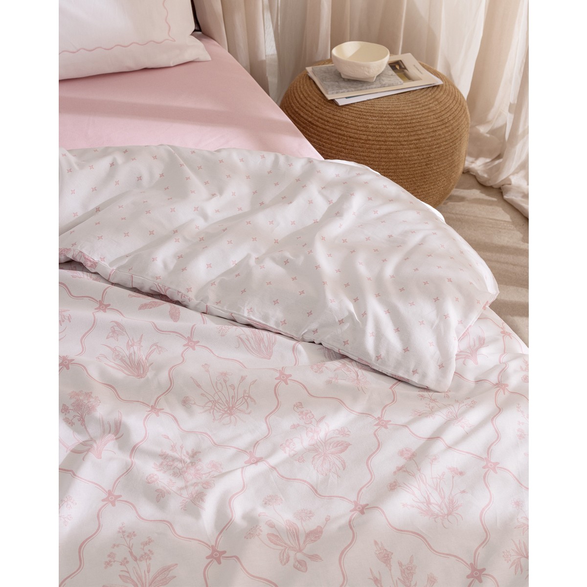Madame Coco Rotule Tek Kişilik %100 Pamuk Ranforce Nakışlı Nevresim Takımı – Pudra