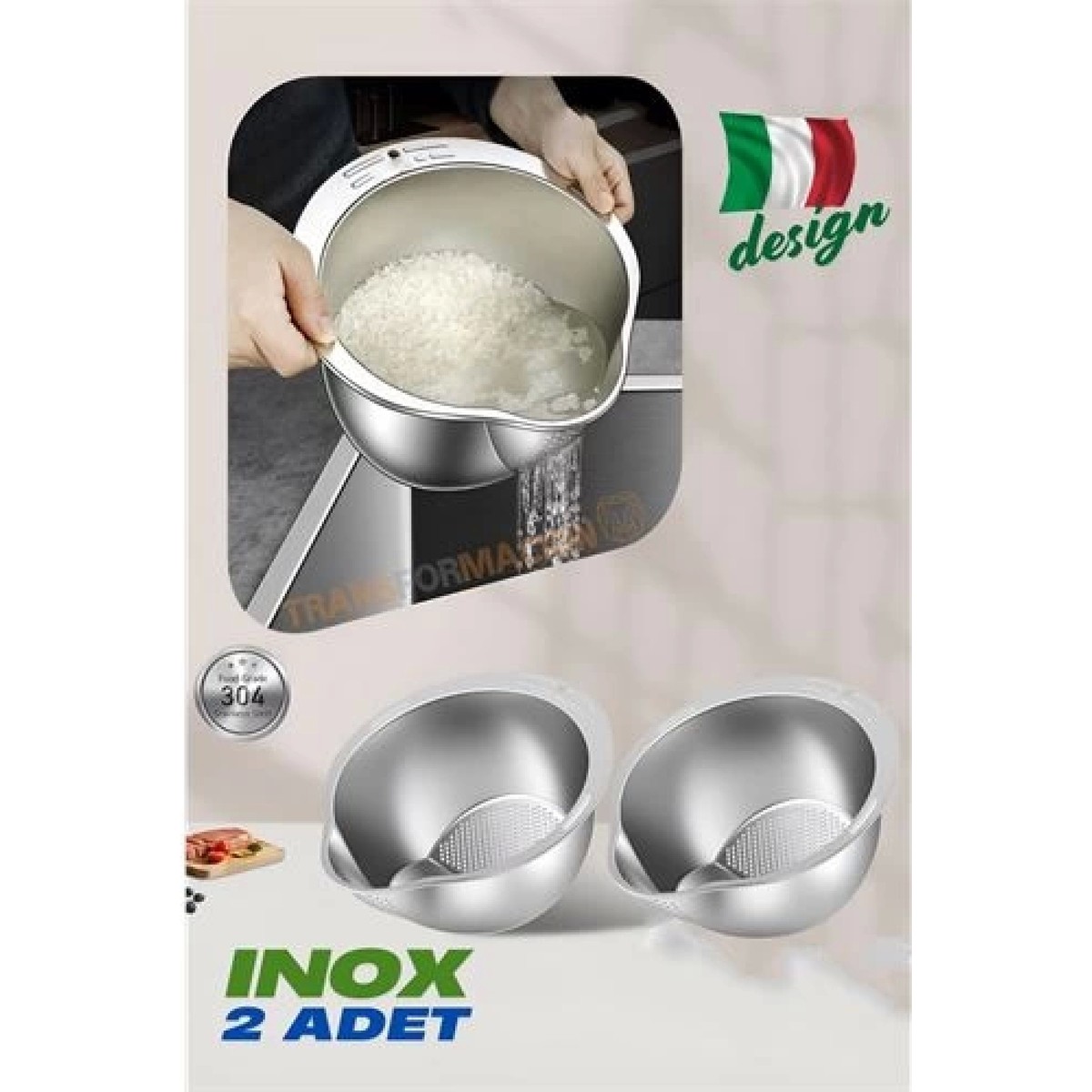 Inox Süzgeç Pirinç Makarna Salata Süzgeci 304 Paslanmaz Çelik 2 Adet