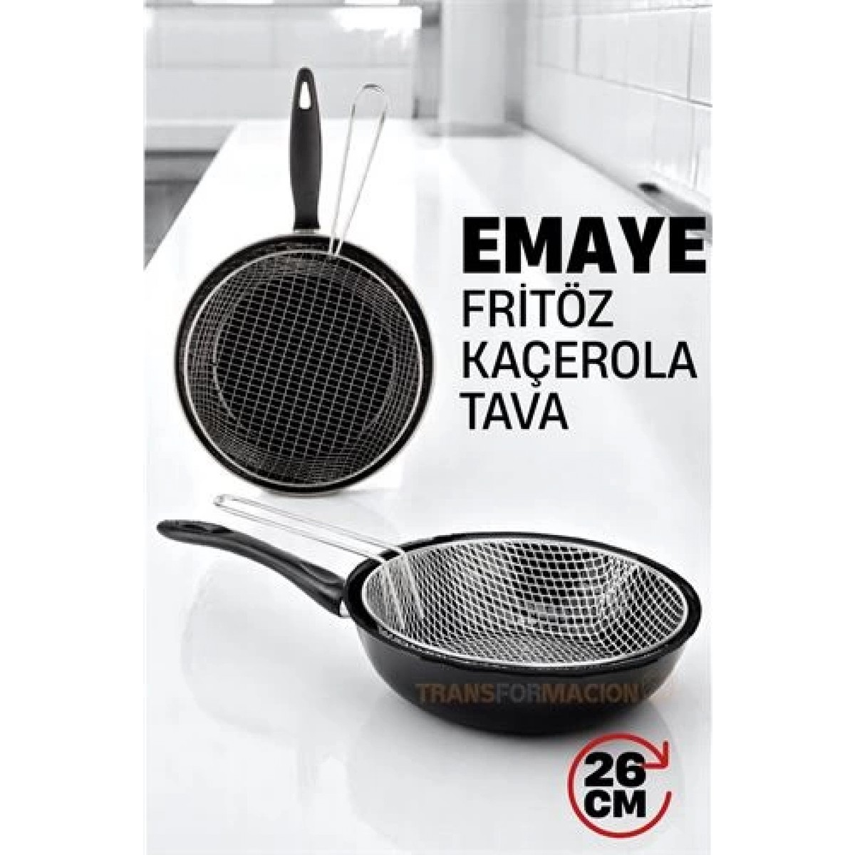 TransForMacion 26 cm emaye fritöz kaçerola tava, süzgeçli ve yapışmaz yüzeyiyle sağlıklı kızartma sunar. Ergonomik ve kolay temizlenir!