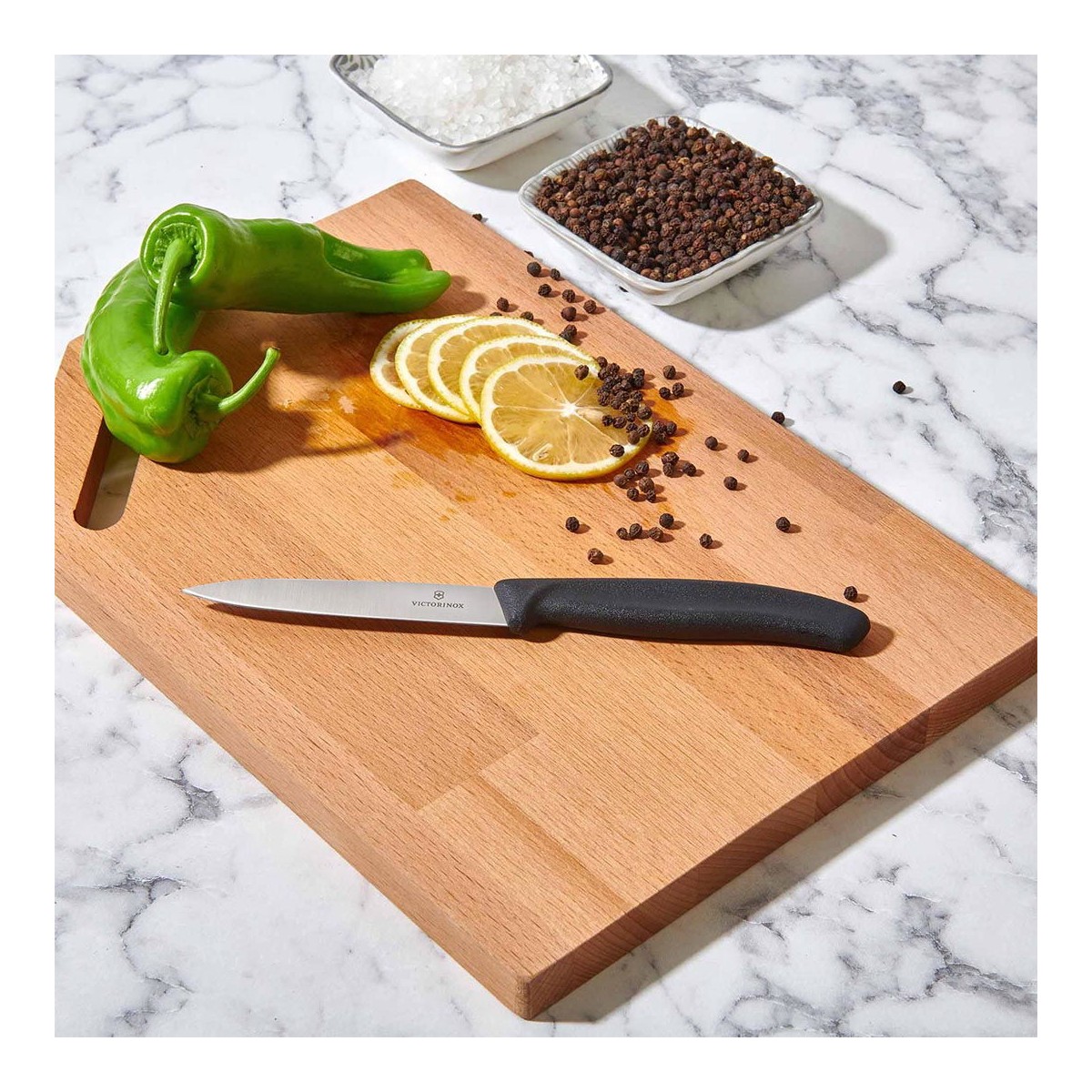 Ürün BilgileriÜrün ÖzellikleriMalzeme/Materyal: Paslanmaz ÇelikÖlçü: 10 cmRenk: SiyahÜrün Tipi: Soyma BıçaklarıMenşei: İsviçre• Ağırlık: 28 grVictorinox Soyma Bıçağı, sebze, meyve ve diğer yiyecekleri kolayca kesmek ve hazırlamak için mükemmeldir.Hassas bilenmiş bıçak ve lazer kontrollü kenar, keskinlik ve dayanıklılık için ideal kesme açısı sağlar.Kullanım ve Bakım Bilgileri• Makinede yıkanması uygundur.Faydalı Bilgiler & İpuçları• Paslanmaz çelikten oluşması sebebiyle dayanıklı ve uzun ömürlüdür.• Günlük kullanımlarınızda gönül rahatlığıyla tercih edebilirsiniz.