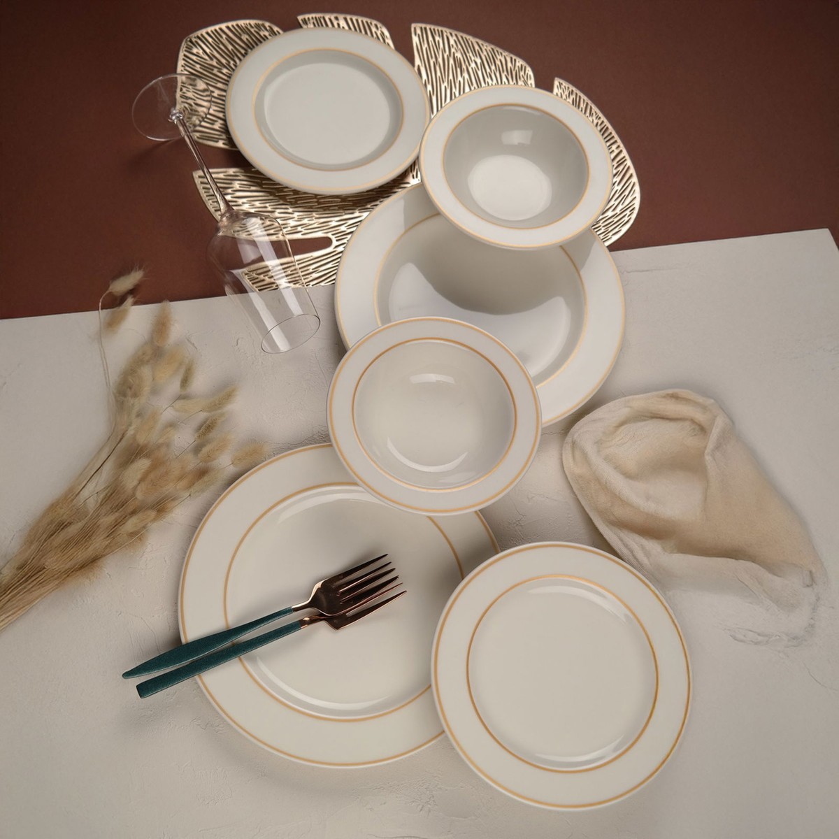 Altın File Bonsai 18 Parça Yemek Seti – Ekru