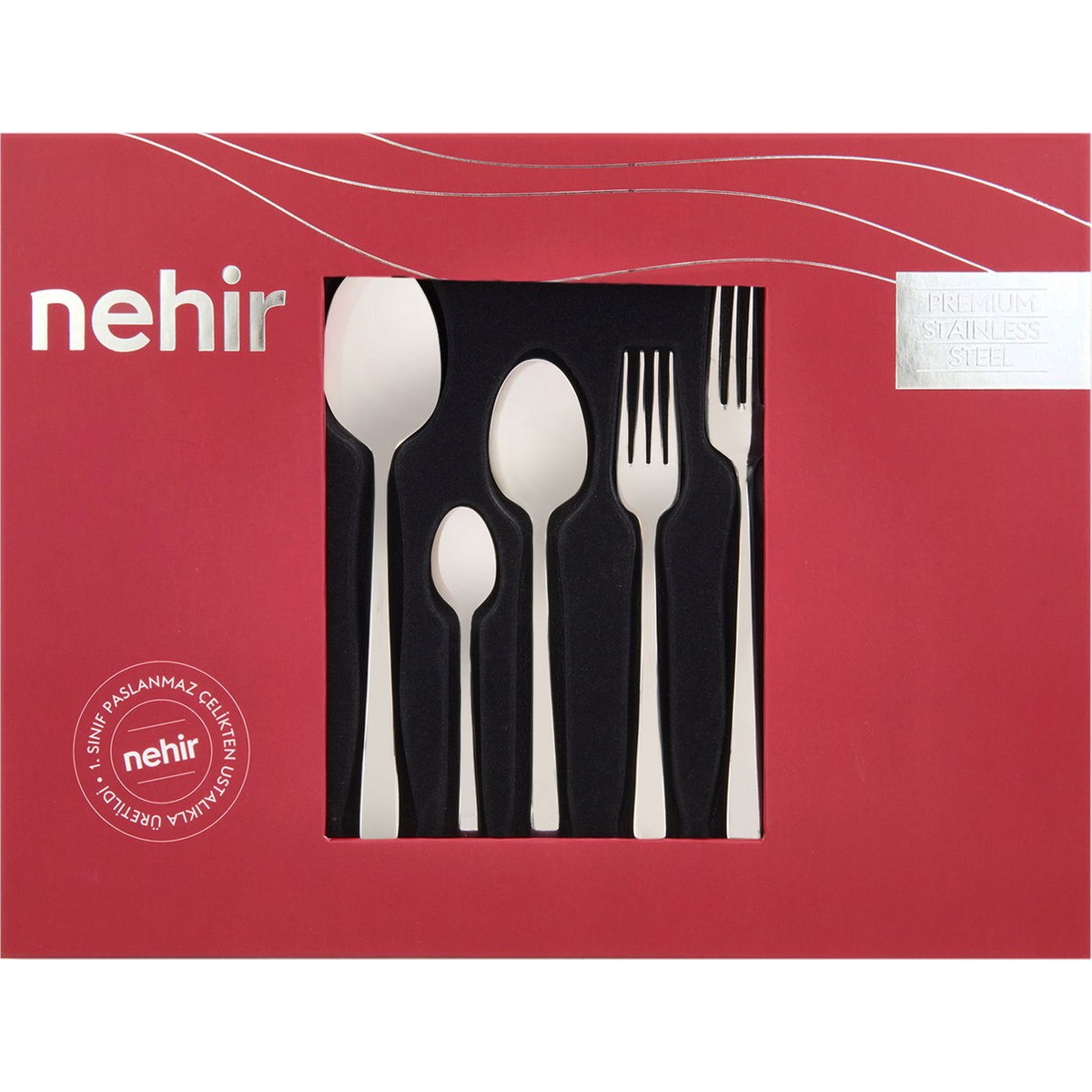 Ürün BilgileriÜrün ÖzellikleriMalzeme/Materyal: Paslanmaz ÇelikRenk: GriKişi Sayısı: 6 KişilikParça Sayısı: 30 ParçaMenşei: TÜRKİYENehir Sultan Sade 30 Parça Çatal Kaşık Seti, yuvarlak formları, ayna gibi parlak çeliği ve klasik tarzıyla sofralarınıza değer katacak.Tüm Nehir çatal kaşık bıçak takımları 18/10 Cr-Ni paslanmaz çelik kullanılarak üretilmektedir. Tasarımlarında hem güzelliğe, hem dayanıklılığa önem verilmektedir. Keyifle, yıllarca ilk günkü gibi kullanabilirsiniz.Ürün İçeriği• Yemek kaşığı: 6 adet• Yemek çatalı: 6 adet• Tatlı kaşığı: 6 adet• Tatlı çatalı: 6 adet• Çay kaşığı: 6 adetKullanım ve Bakım Bilgileri• İlk kullanımdan önce sıcak su bulaşık deterjanı ile temizleyiniz.• Temizlik esnasında sert metal fırçalar kullanmayınız.Faydalı Bilgiler & İpuçları• Özel davetlerinizde veya günlük kullanımlarınızda gönül rahatlığıyla tercih edebilir, misafirlerinize eksiksiz sofralar kurabilirsiniz.• Dayanıklı yapıları sayesinde uzun yıllar sofranızdaki keyifli anlara eşlik eder.• 6 kişilik çatal – kaşık – bıçak takımı şık tasarımıyla her tarzda yemek takımına uyum sağlar.