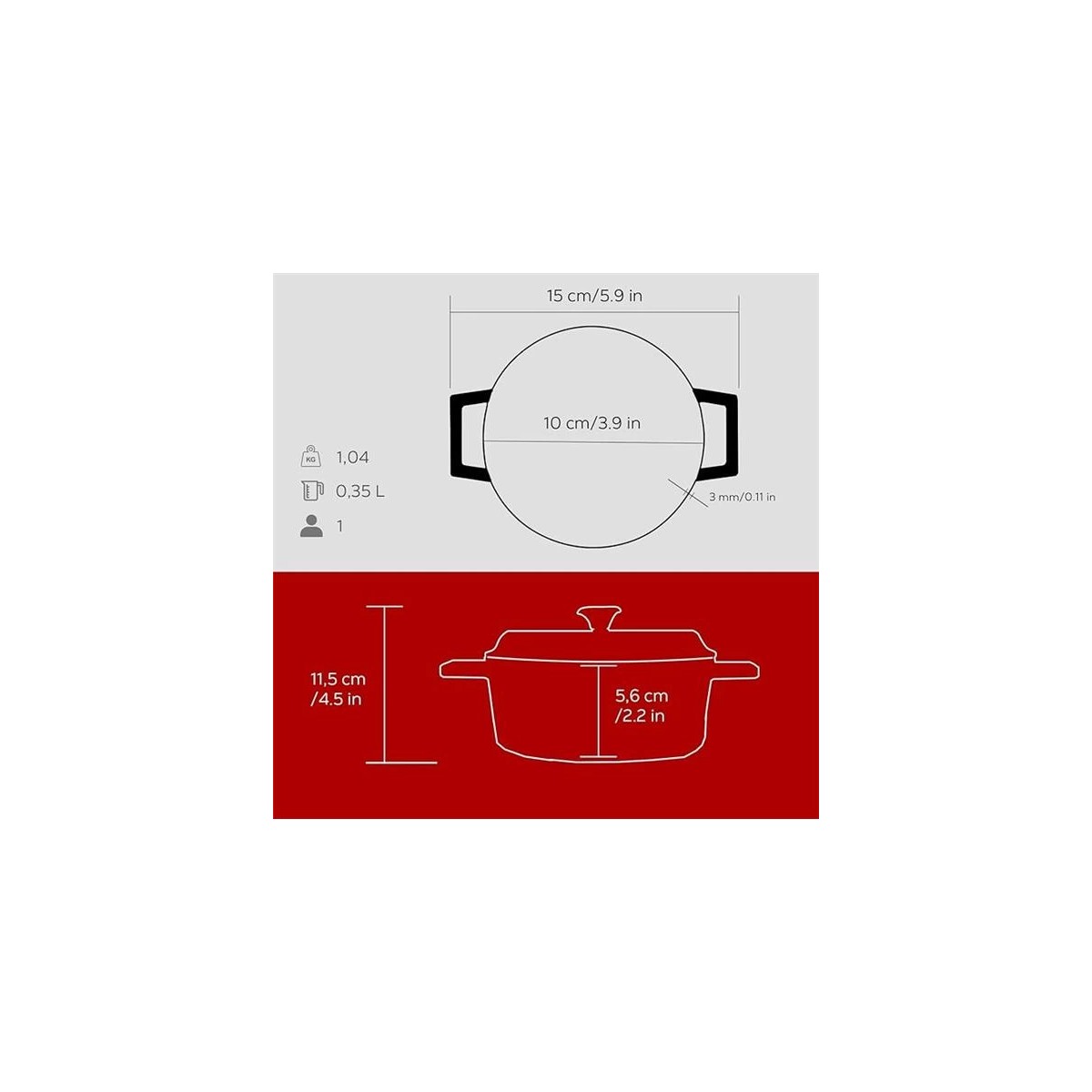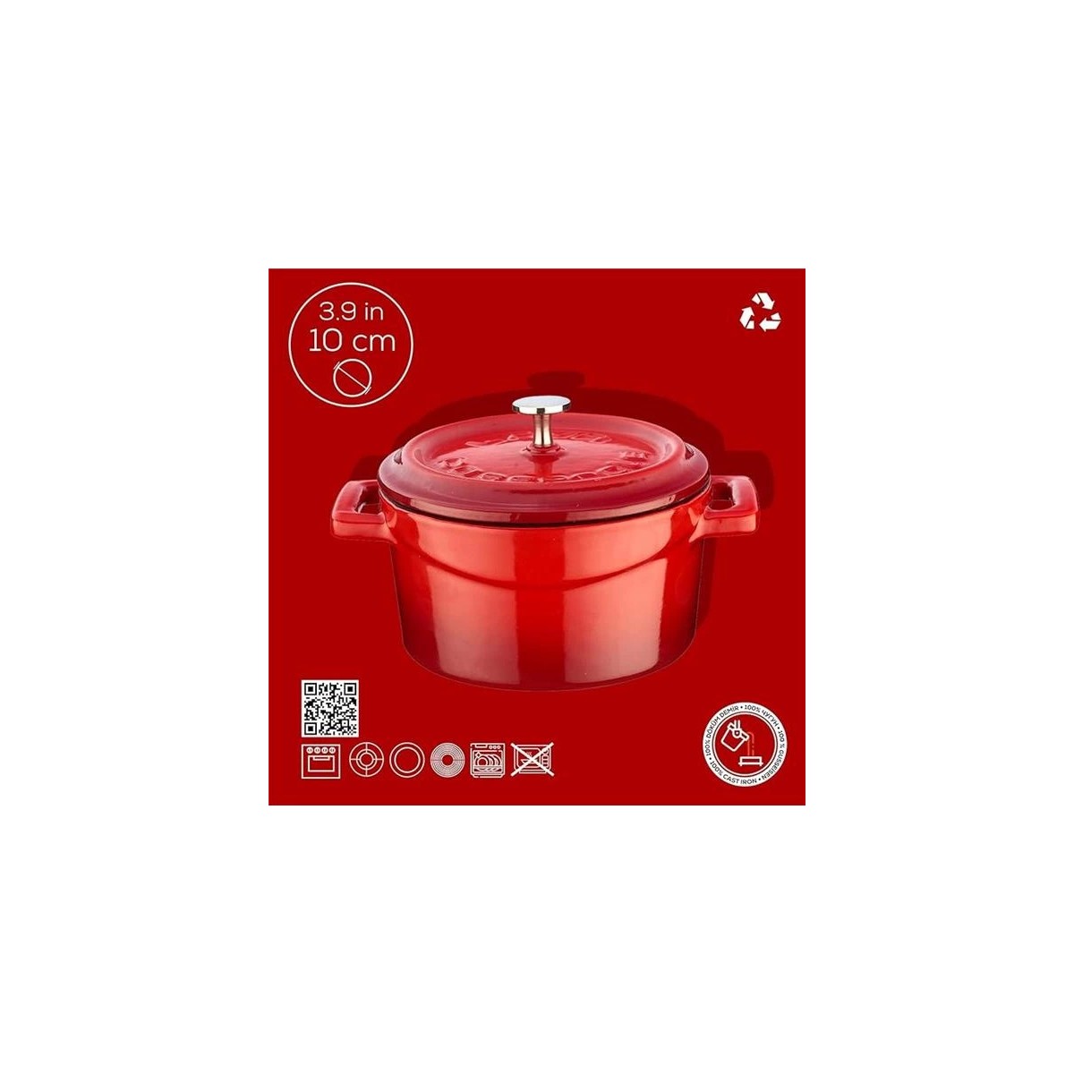 Metal Döküm Mini Tencere, 10 Cm, 0.35 L Hacim, Kırmızı