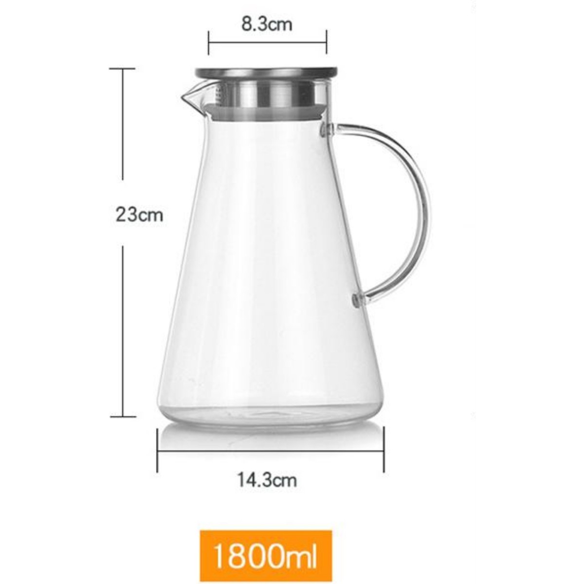 Meturas 1800ML Dayanıklı Vakumlu Cam Sürahi Metal Süzgeç ve Kapaklı