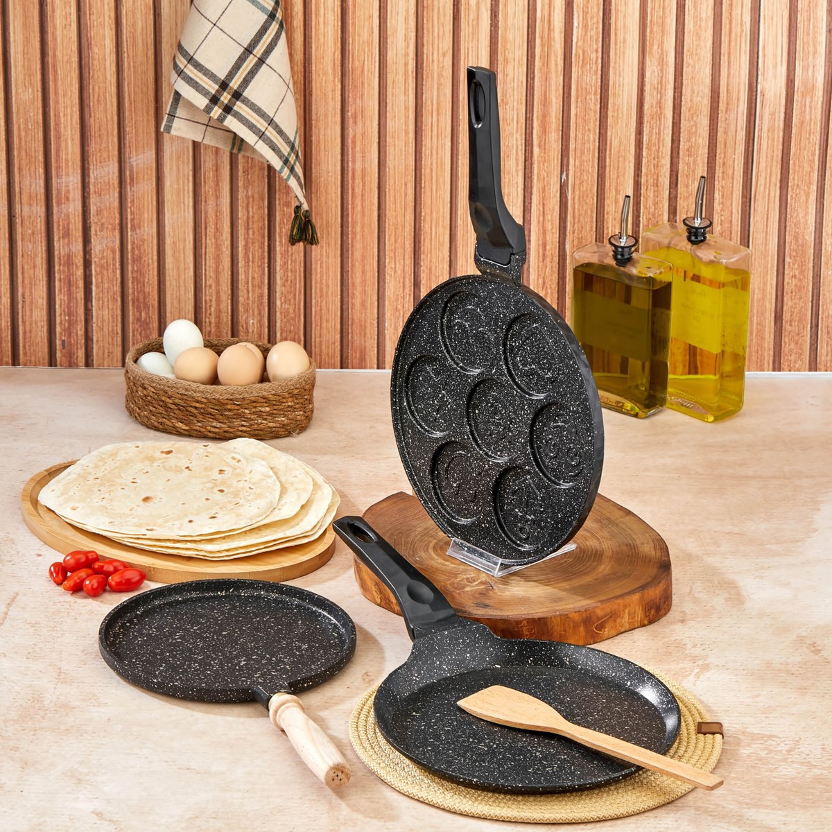 Miapadella Mia Padella Granit Döküm 3 Parça Pankek Krep Gözleme Tavası Siyah