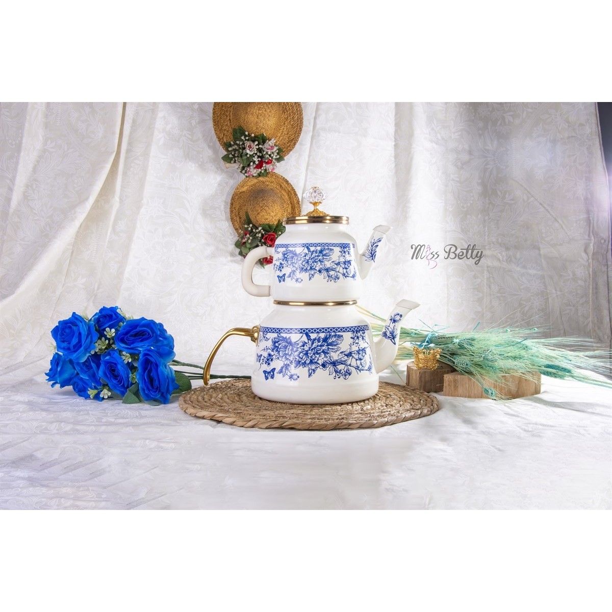 Miss Betty Blue Life Emaye Çaydanlık