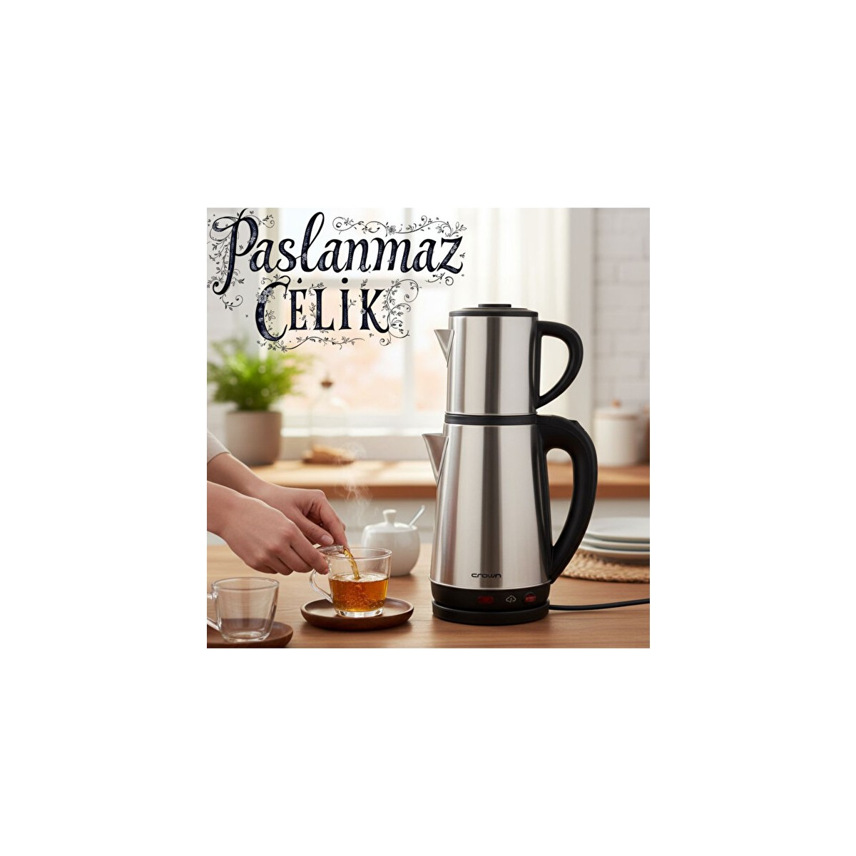Crwn Elektrikli Çay Makinesi Çelik Çaydanlık Takımı Su Isıtıcı Türk Çayı 1800W