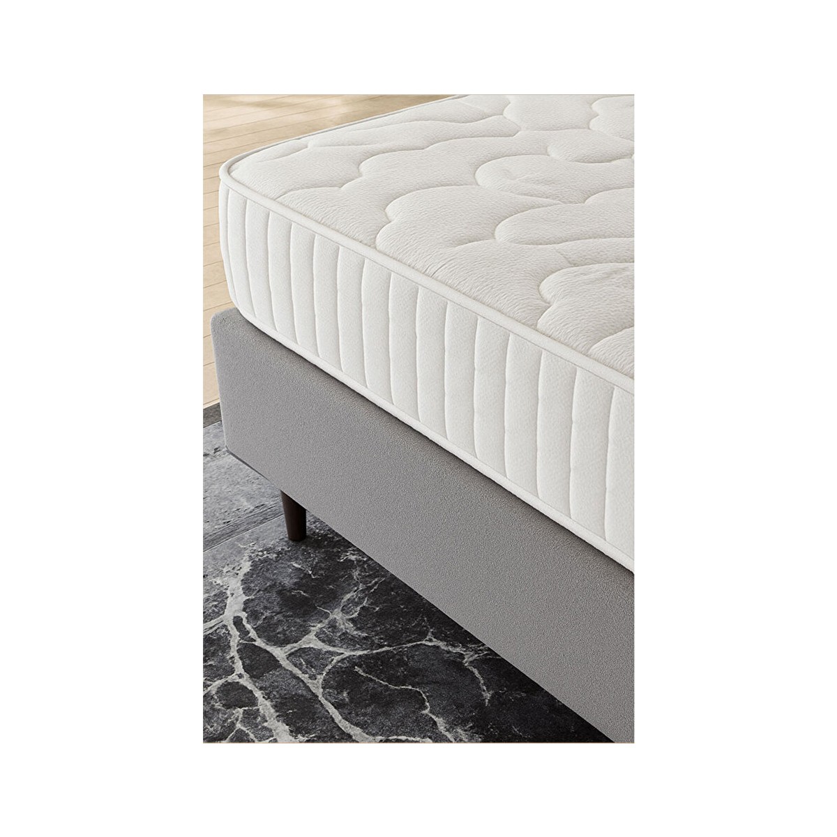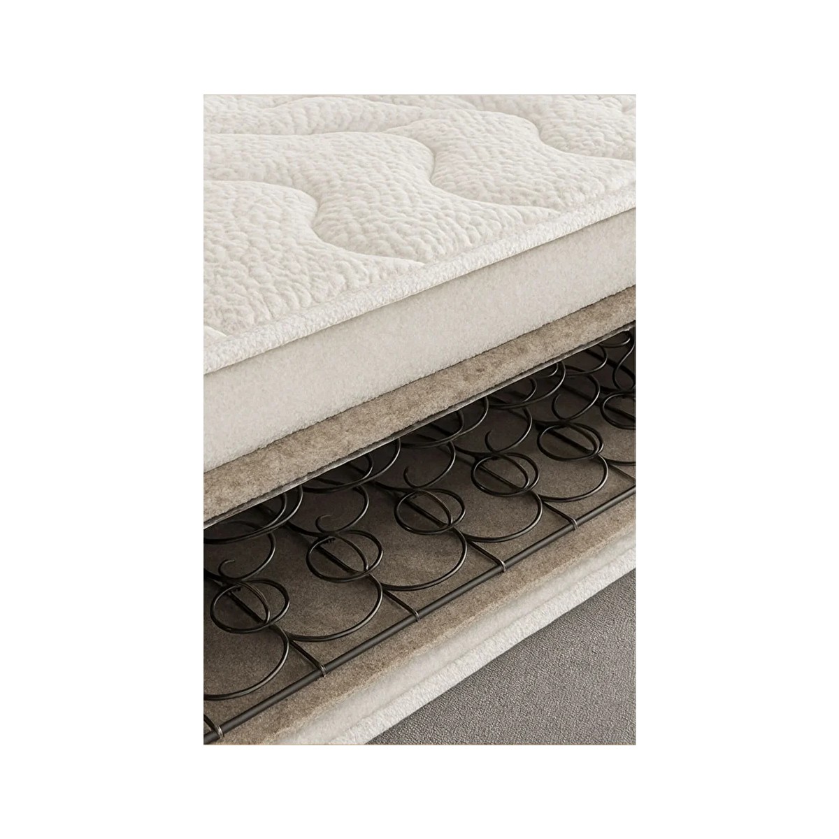 Yaylı Sistem: Yüksek dayanıklılığa sahip yay yapısı, uzun yıllar formunu korur ve çökme yapmaz. Dengeli ağırlık dağılımı ile konforu artırır.