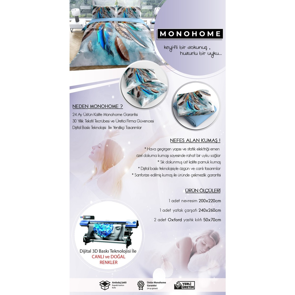 MonoHome Avaiyo 3D Pamuk Saten Çift Kişilik Nevresim Takımı