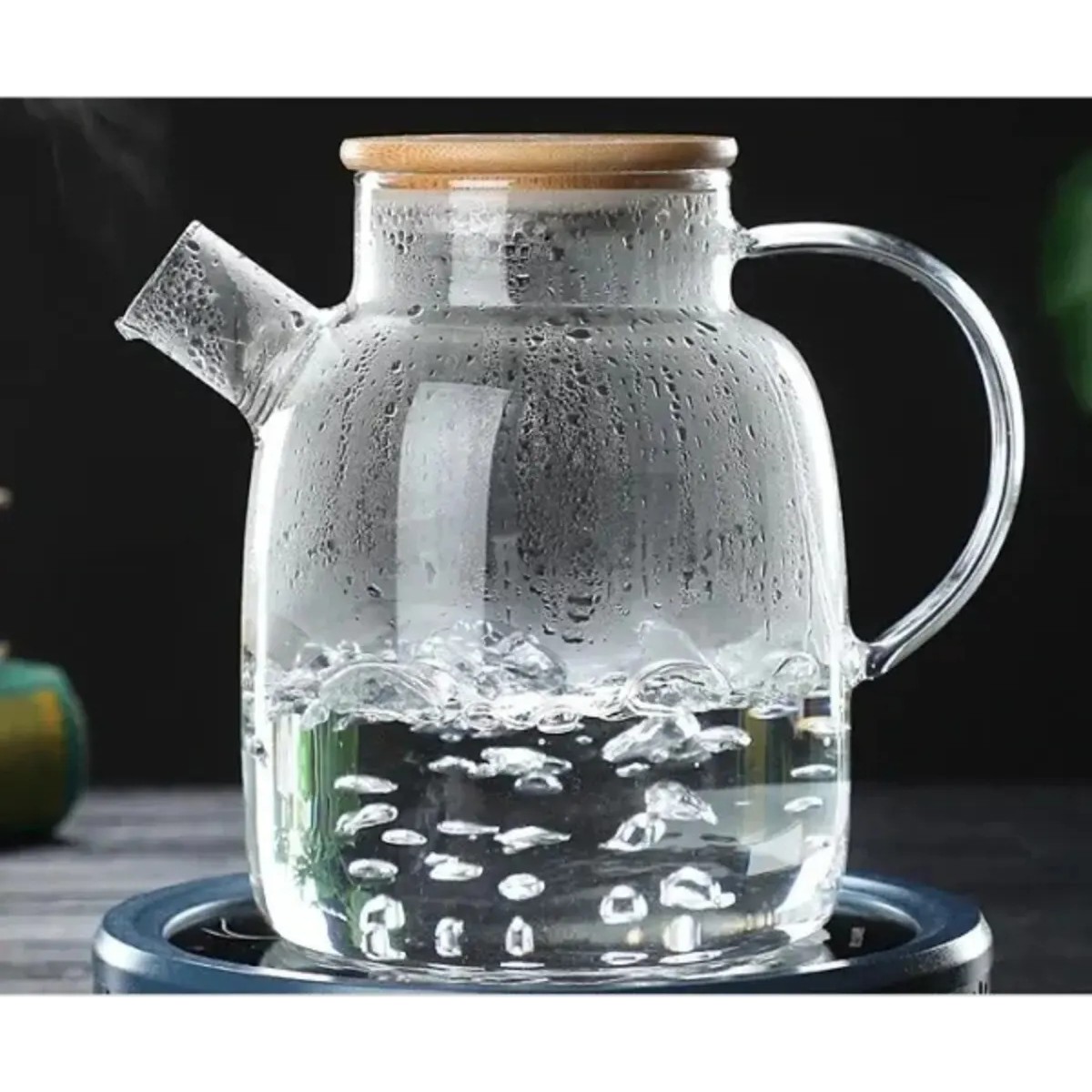 Morponi Borosilikat Cam Bambu Kapaklı Bitki Çayı Demliği & Sürahi 1500 ml