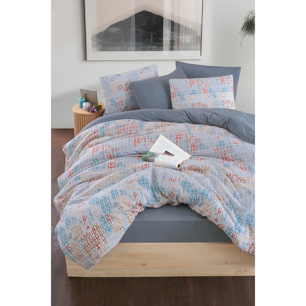 Resimde göründüğü gibi, aşırı kaliteli bir kumaş beklemeyin normal orta incelikte hoş bir nevresim. Özellikle yaz ayları için mükemmel ????