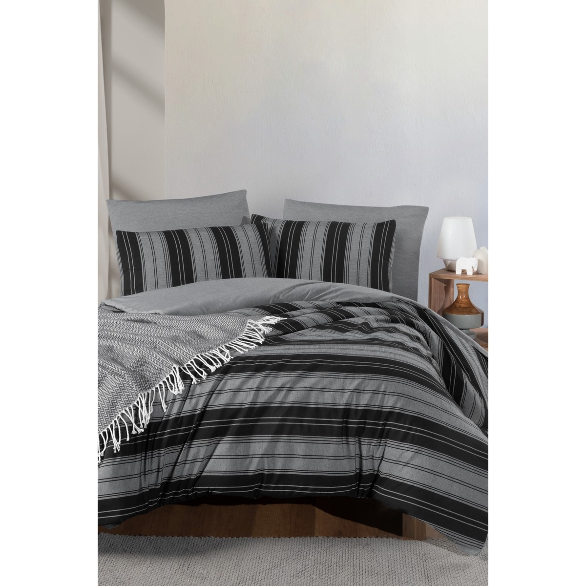 lastikli çarşaflı tek kişilik nevresim takımı çizgili siyah