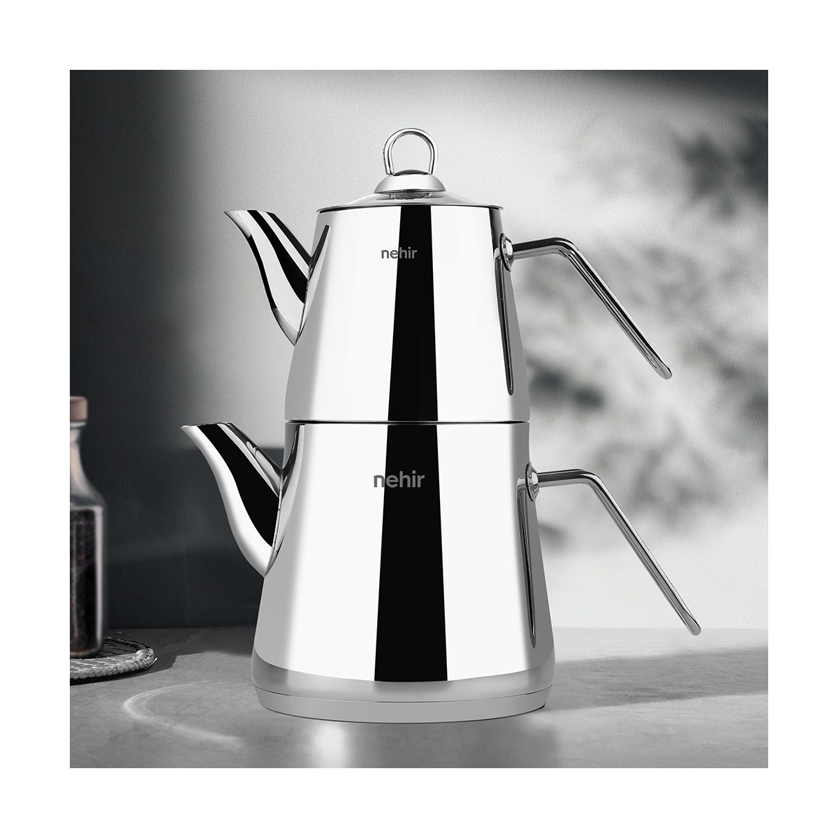 Nehir Alya Maxi Büyük Boy Paslanmaz Çelik 1.10-2.15 Lt. Çaydanlık Takımı