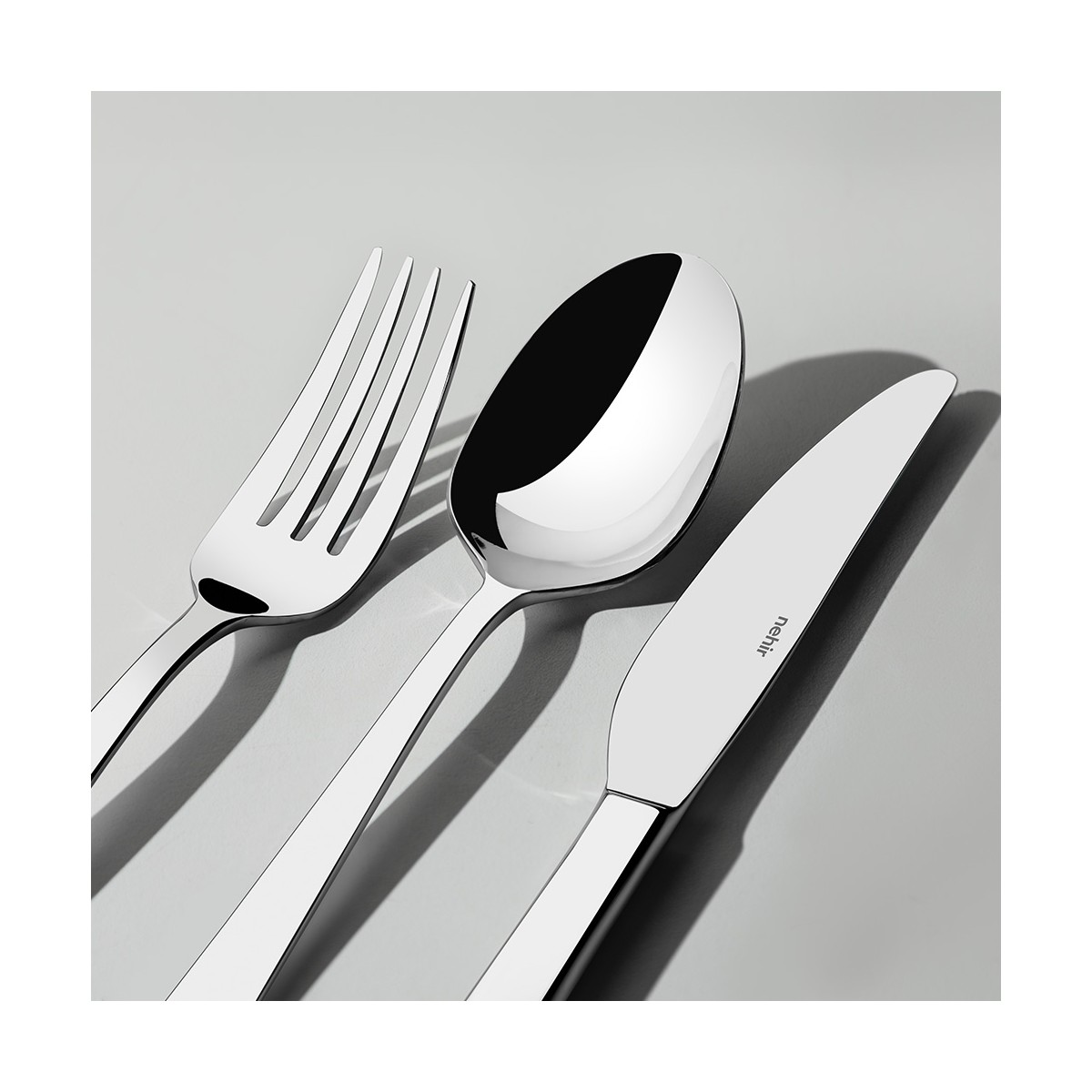Türkiye’de Üretildi: Dalyan Sade 6 Kişilik 18Parça Çatal Kaşık Bıçak Takımı, Türkiye’de Nehir’in usta zanaatkarları tarafından özenle üretilmiştir. Yüksek işçilik ve kalite, her bir parçanın el emeği ile tasarlanarak sofralarınıza zarif bir dokunuş katar.