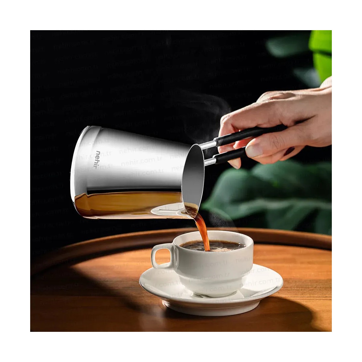 Nehir Everest Büyük Boy Cezve, paslanmaz çelik yapısı sayesinde kahve pişirmeden tutun, çok amaçlı kullanıma uygundur. İnce kulp tasarımıyla ısıya dayanıklıdır.