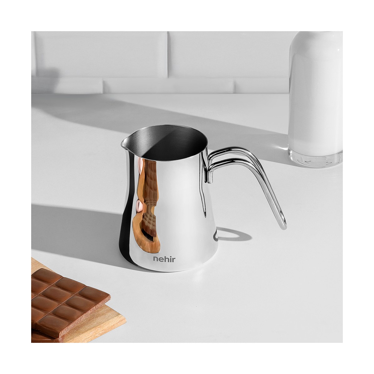 - Parlak Polisajlanmış Yüzey: Everest Mini 500 ML Çelik Sütlük, özenle polisajlanmış parlak yüzeyiyle şık ve modern bir görünüm sunar.