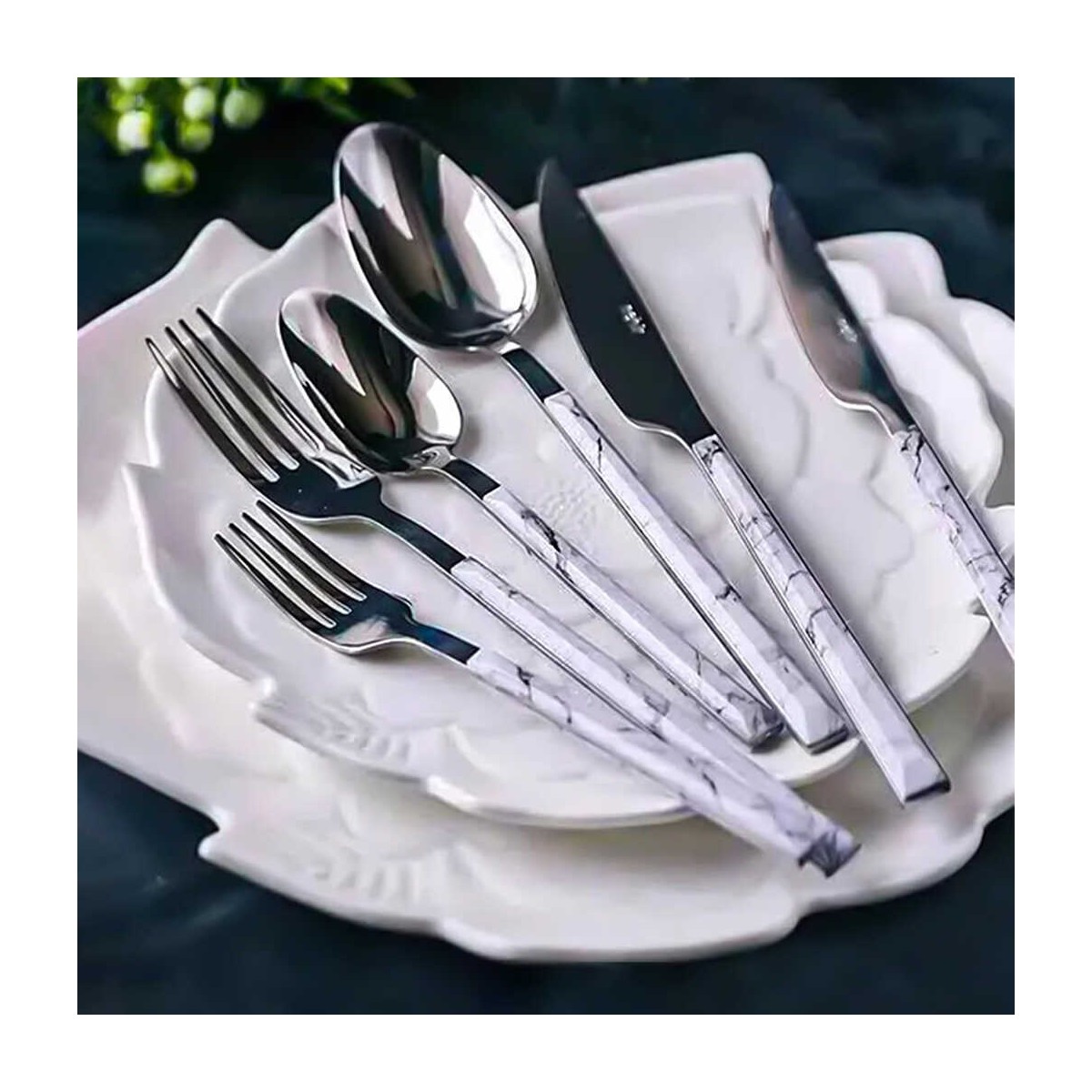 Nehir Flore Parlak Beyaz Mermer 36 Parça Çatal Bıçak Kaşık Takımı