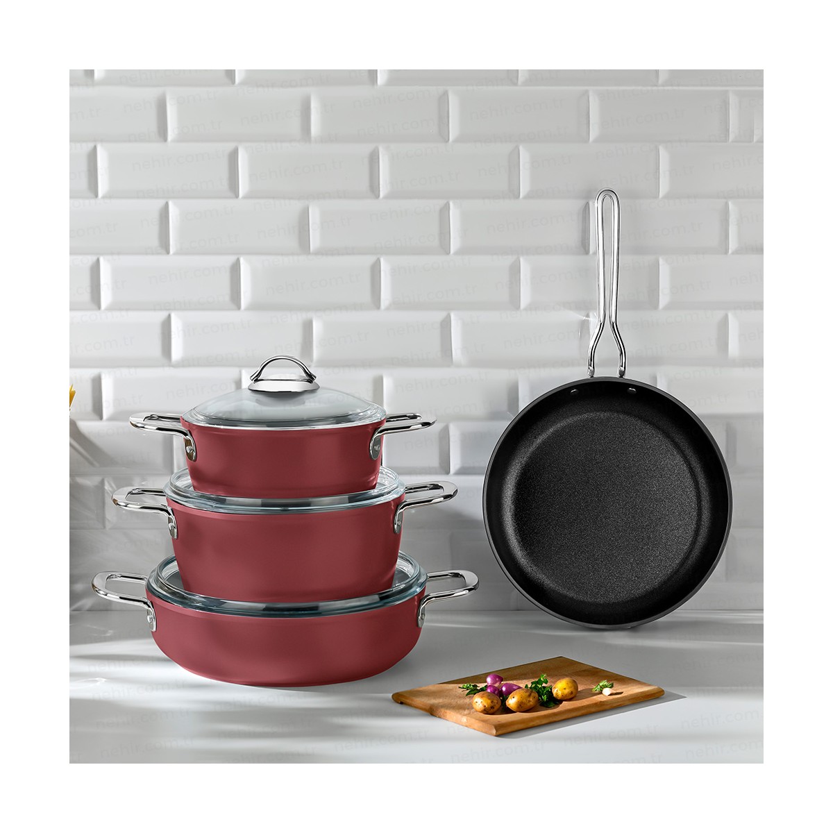 Nehir Galaxy Titanium Narçiçeği 7 Parça Tencere Seti