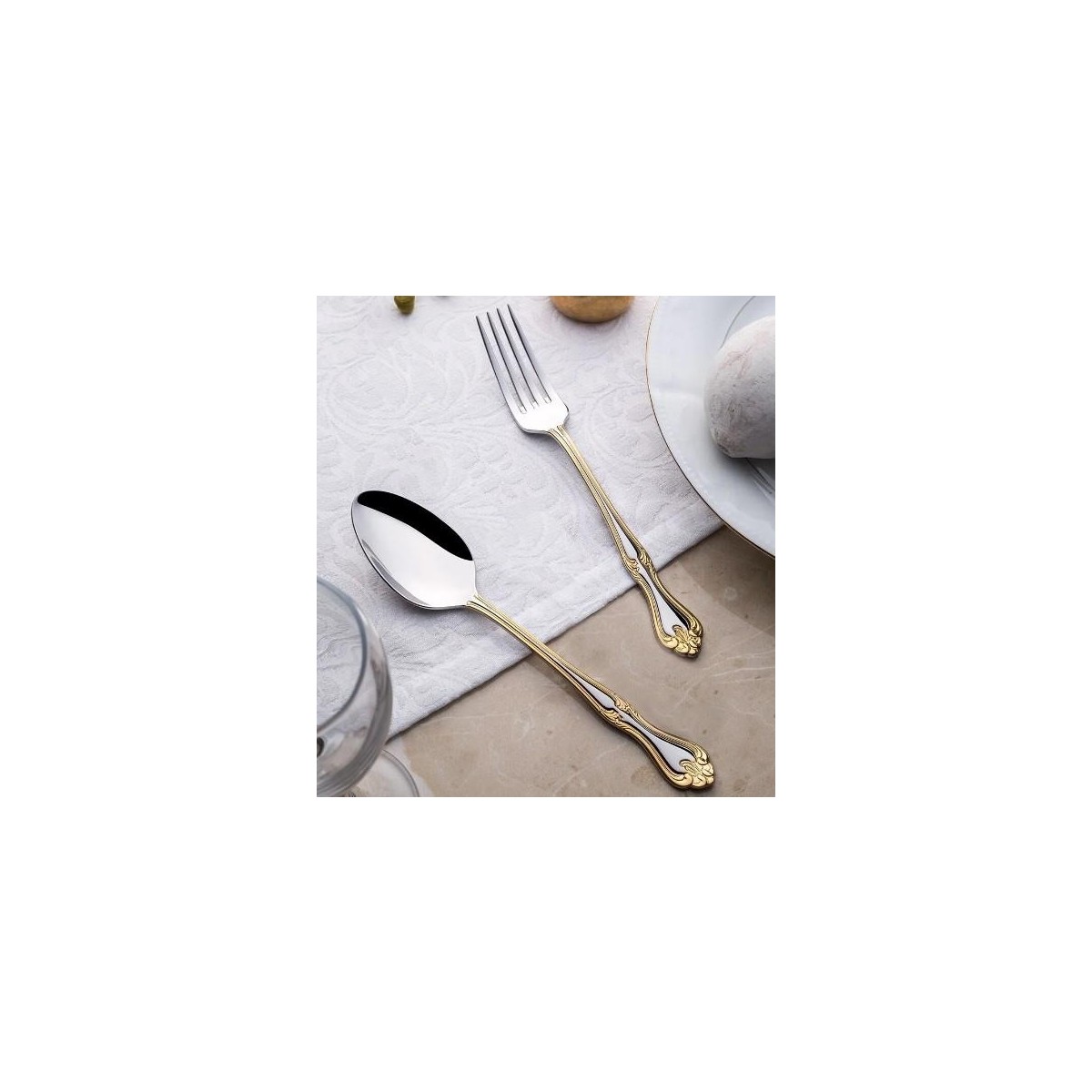 Nehir Lalezar Altın Sade 12 Kişilik 60 Parça Kutulu Çatal Kaşık Takımı