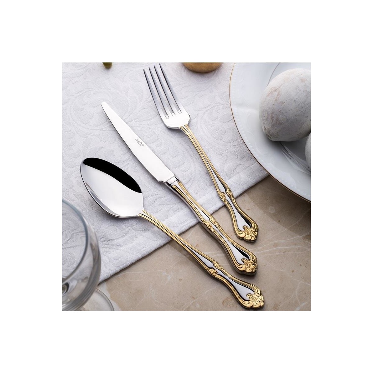 Nehir Lalezar Altın Sade 12 Kişilik 89 Parça Kutulu Çatal Kaşık Bıçak Takımı