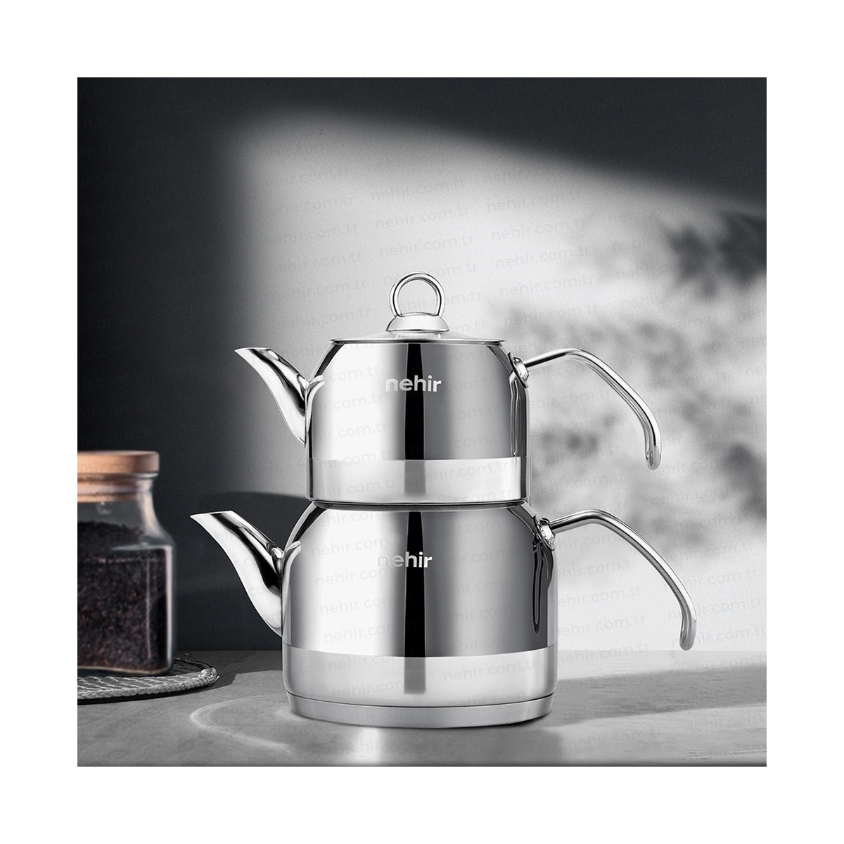Nehir Lotus Midi Orta Boy Paslanmaz Çelik 1.0-1.9 Lt. Çaydanlık Takımı