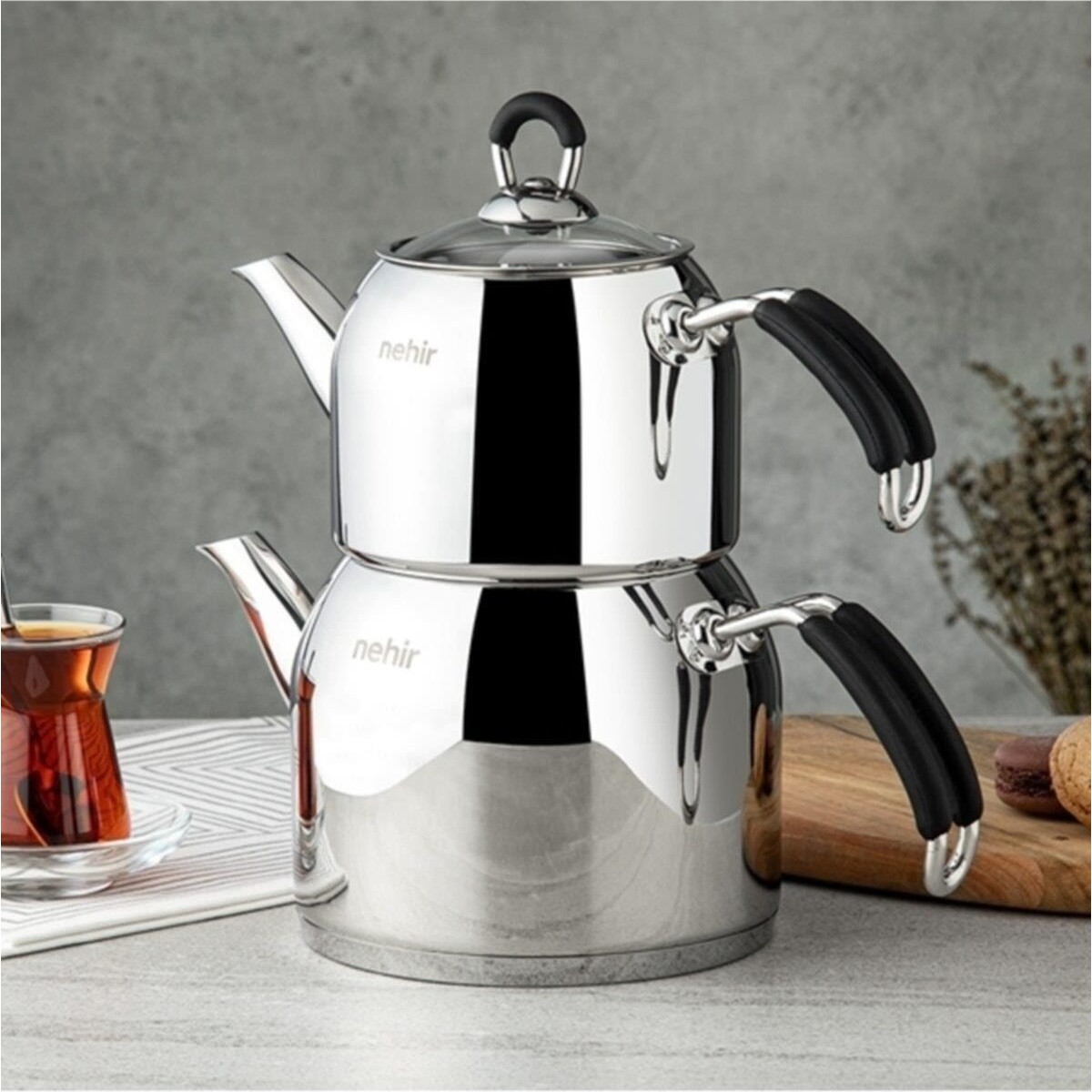 Mağazası olan markalardan daha iyi bir çelik kalitesi var. Demlik kapağı cam. Çaydanlık içinde demlik altından su damlamasını önleyen bir iç kapak var. Kulplar silikon kaplı. Kalabalık misafirler ve geniş aile için ideal. 2-3 kişi için çok büyük gelir. Çatal dışında şimdiye kadar Nehir markasını almamıştım. Ürünü çok beğendim. Umarım yorumum faydalı olmuştur.