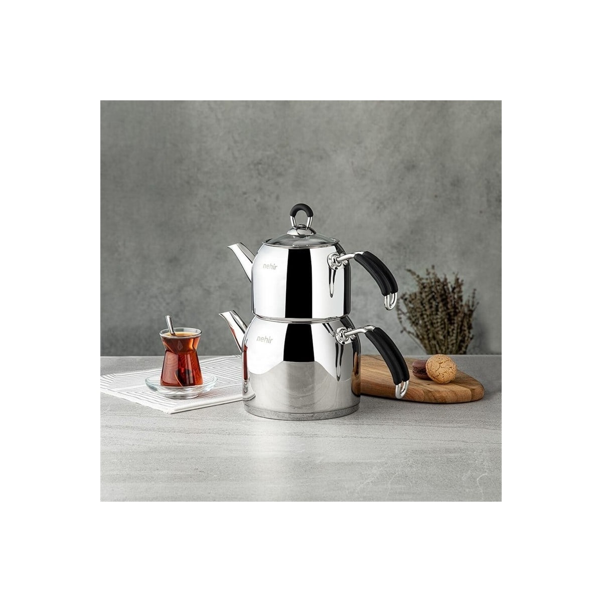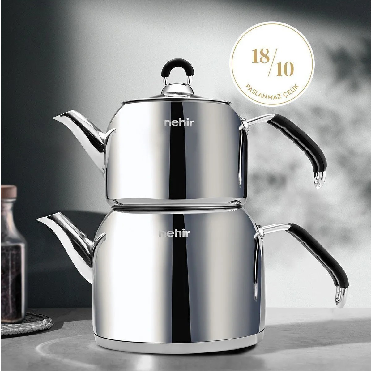 Nehir Modern Mini Küçük Boy 0.8-1.6 Lt. Paslanmaz Çelik Çaydanlık Takımı