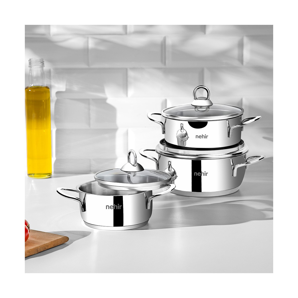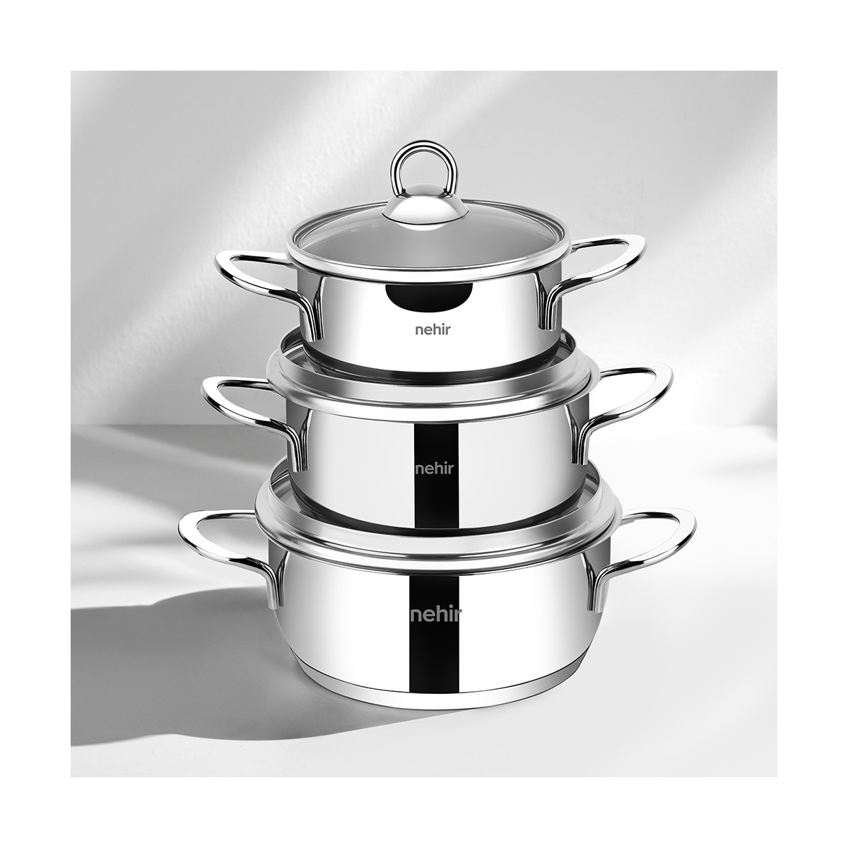 Nehir Silver 6 Parça Paslanmaz Çelik Mini Tencere Seti (12-14-16 Cm)