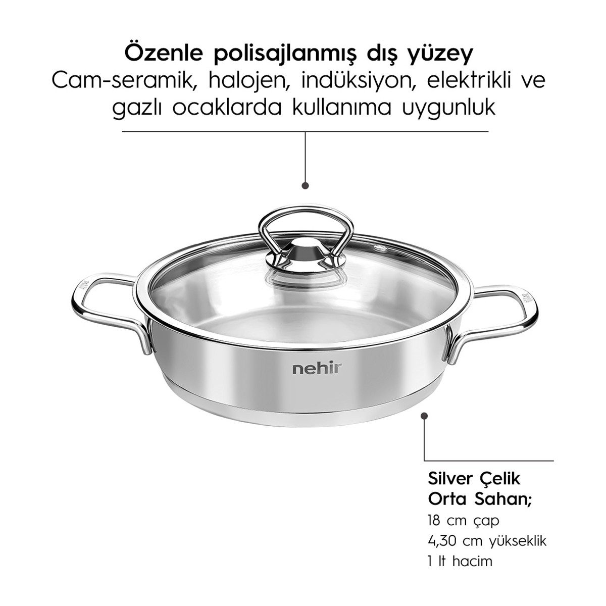 - 1 Adet 18 cm Sahan ve Kapağı (Hacim: 1 lt)