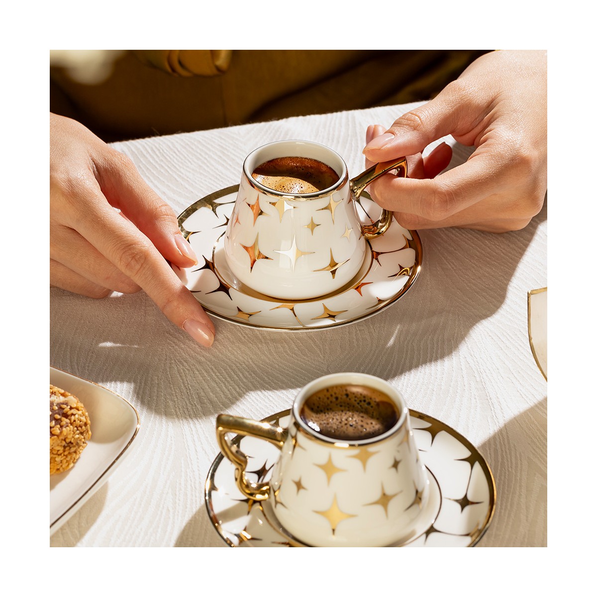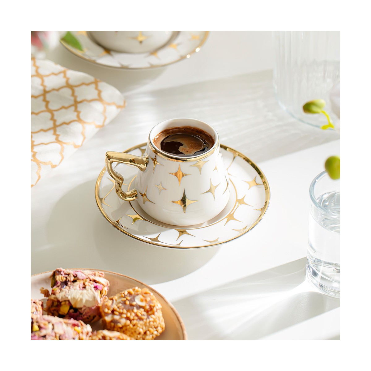 • Modern Tasarım: Minimalist ve modern çizgileriyle sofistike bir görünüm sunan Rüya Kahve Fincan Takımı, her türlü sofraya zarif bir dokunuş katmaktadır.