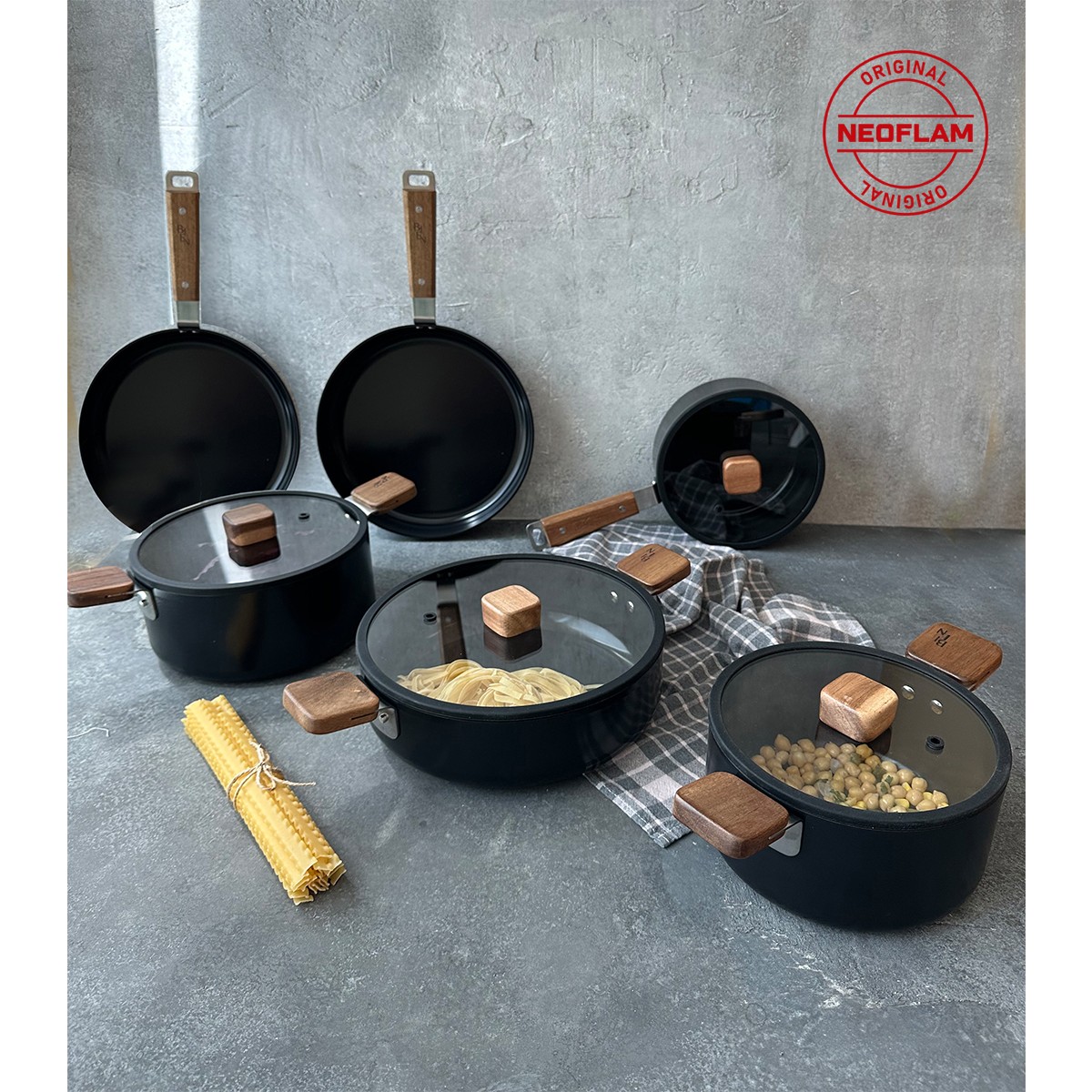 Tasarımına bayıldım,sap ve kulplarının ahşap oluşu çok ayrı bir hava katmış.Neoflam markasının kalitesini daha önce ürünlerini kullandığımdan bildiğim için tereddüt etmeden satın aldım.İnanılmaz bir yapıştırmama özelliğine sahip;döküm olduğundan kısık ateşte bile neredeyse düdüklü tencere kadar hızlı pişiriyor.En iyisini alayım derseniz düşünmeden,gönül rahatlığı ile alabilirsiniz.