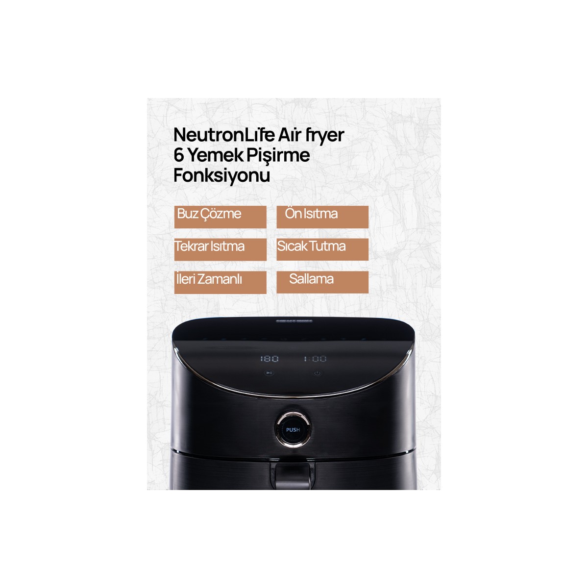 Neutron Life Air Fryer Akıllı Fritöz — yeni nesil pişirme teknolojisi ile mutfakta lezzet ve pratikliği bir araya getiriyor. Akıllı uygulama desteği sayesinde yemeklerinizi uzaktan kontrol edebilir, zamandan ve enerjiden tasarruf edebilirsiniz.