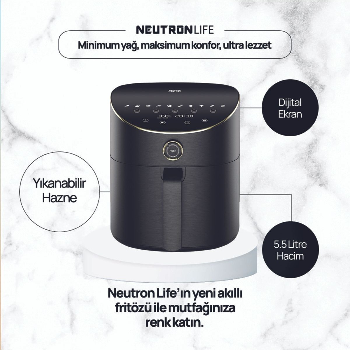 Neutron Smart Air Fryer Akıllı Fritöz – Siyah – 5.5 Litre