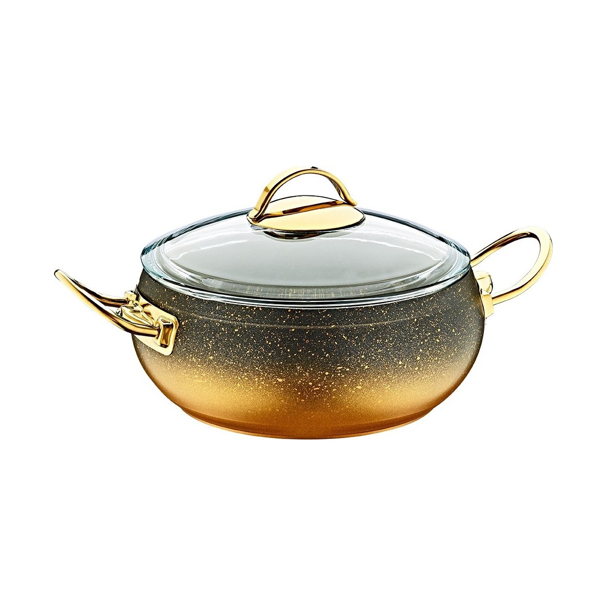 Oms 3141 Cam Kapaklı 24 x 10 cm Granit Derin Küre Tencere Gold