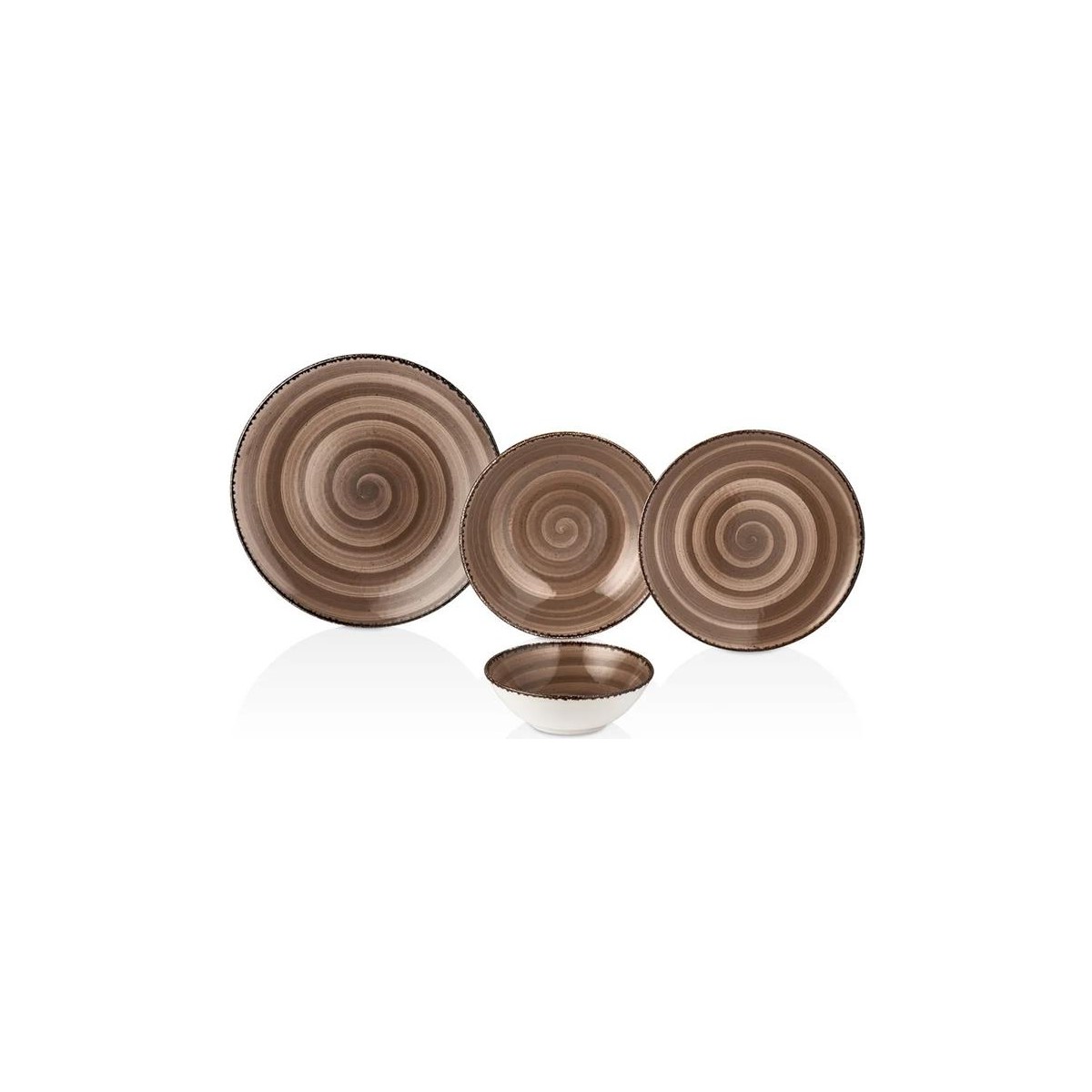 OMS Arte – 11115 – 24 Parça, Modern, Yenilikçi, Porselen Yemek Takımı Kahve Rengi