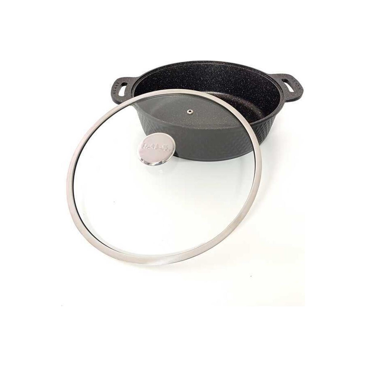 OMS Trıana – 3631 – 2 Parça Biogranit Döküm, Ağır Üstün Kaliteli ve Şık Tasarımlı, 30 cm – 5,3 Litre, Karnıyarık, Pilav Tenceresi Siyah Gövde, Platin Detay