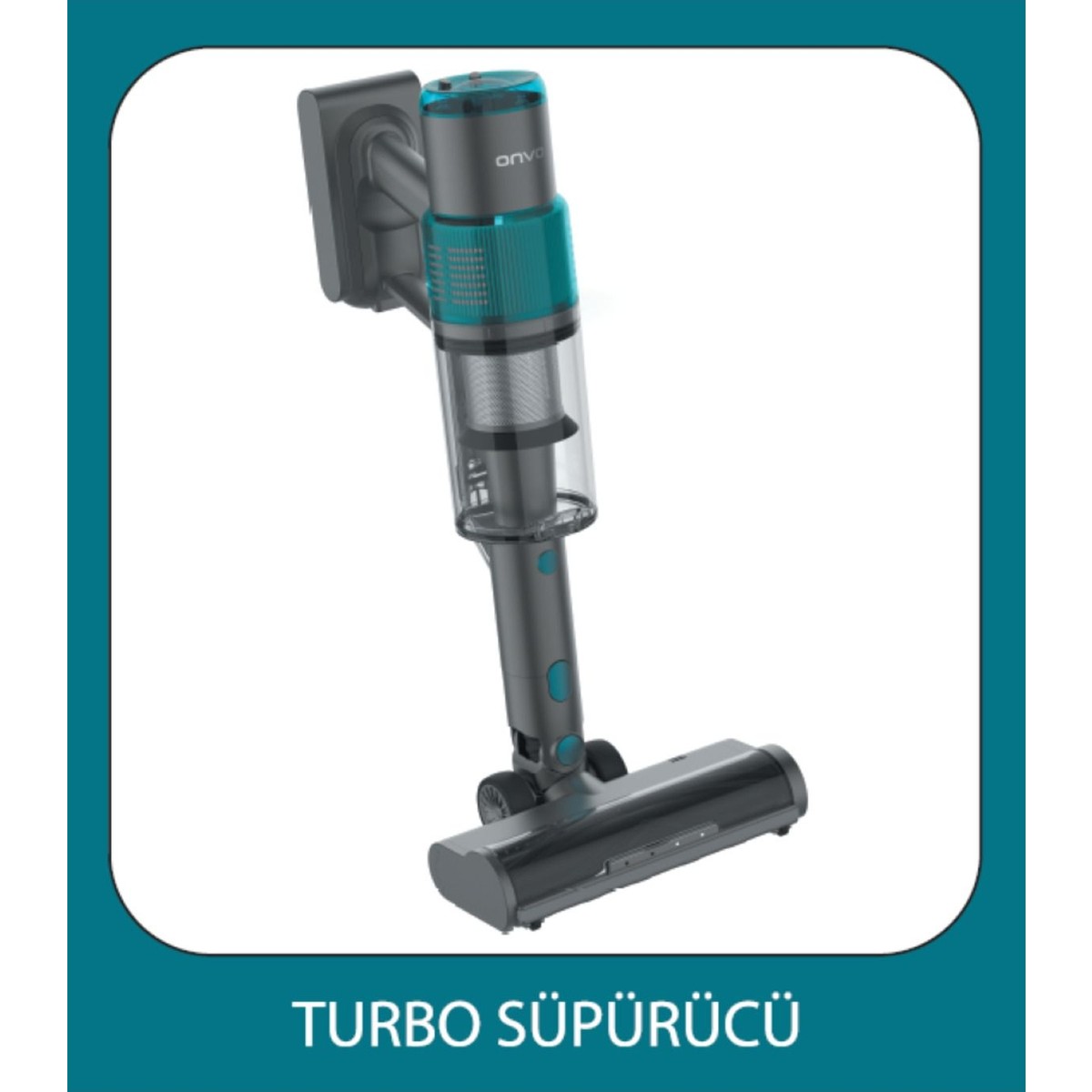 Onvo Kablosuz Şarjlı Dikey Süpürge LED Işıklı Motorlu Fırça 3 Kademe Hız Göstergeli 0,8 L Toz Haznesi