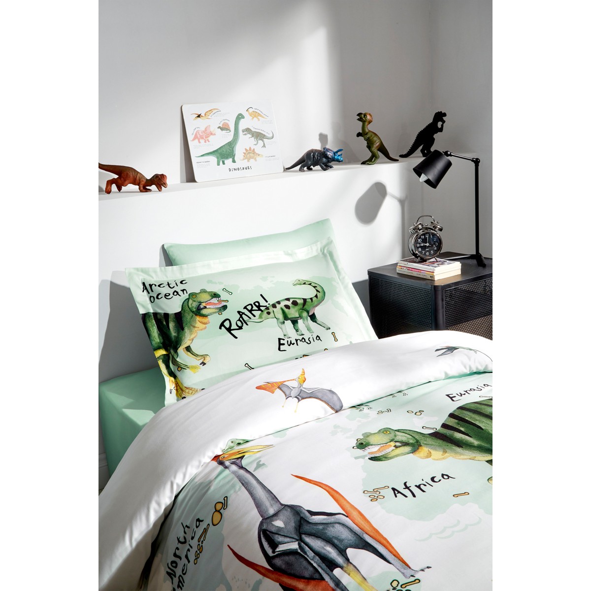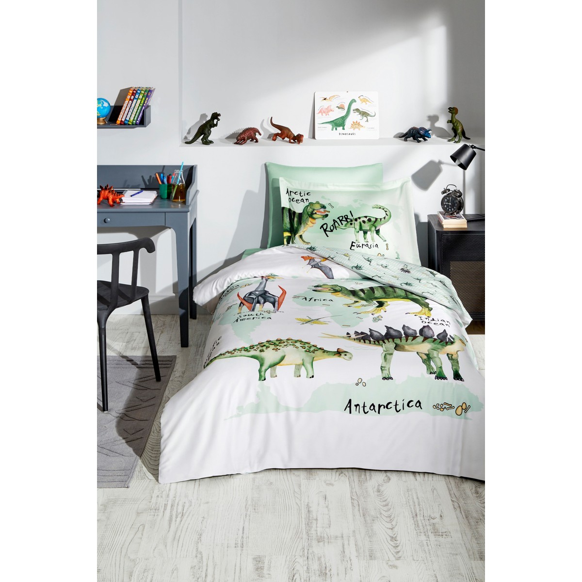 Özdilek Dinasour Time Tek Kişilik Lastikli Çarşaf Nevresim Takımı