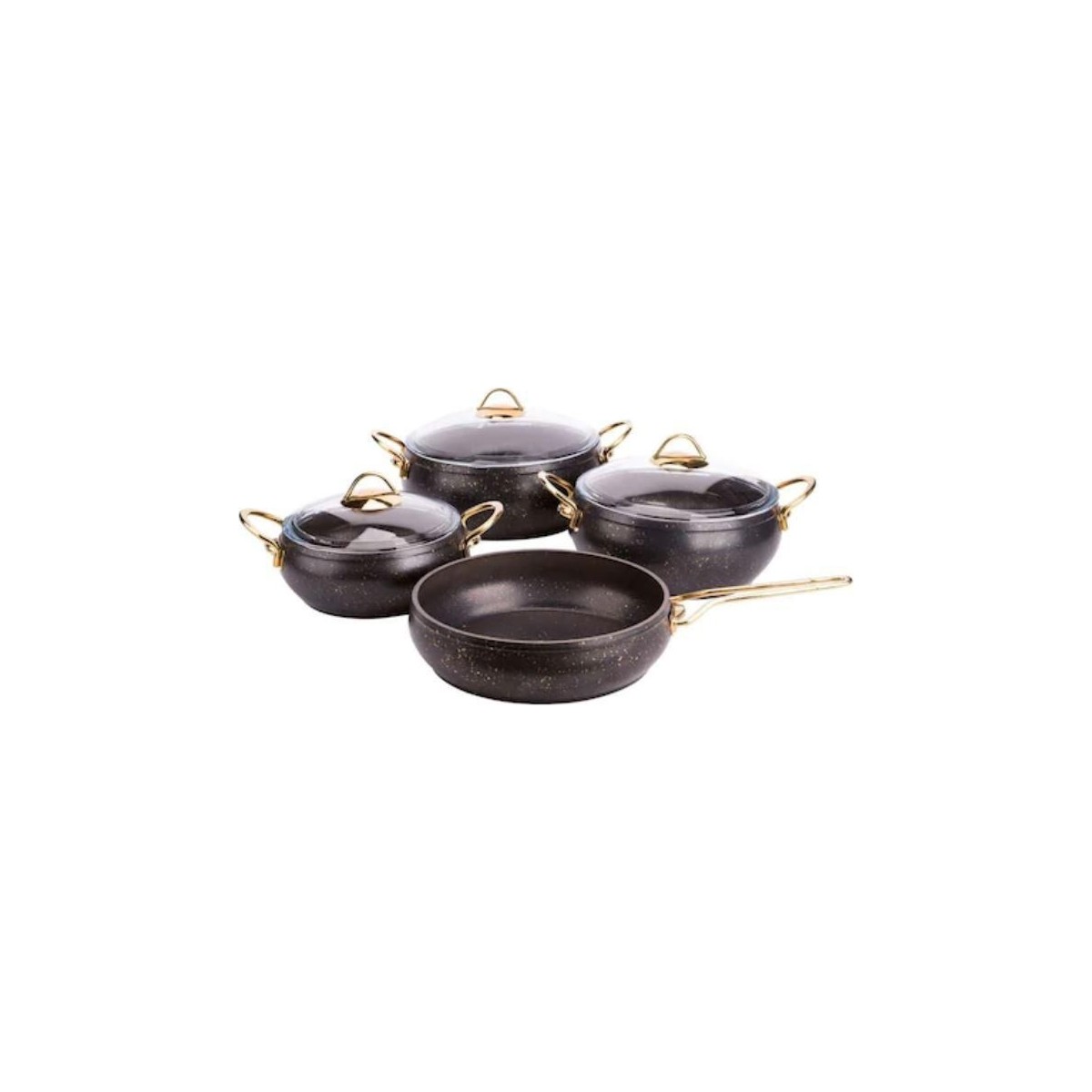 Özkent Granit 7 Parça Güveç Set Altın Sap Siyah K-540