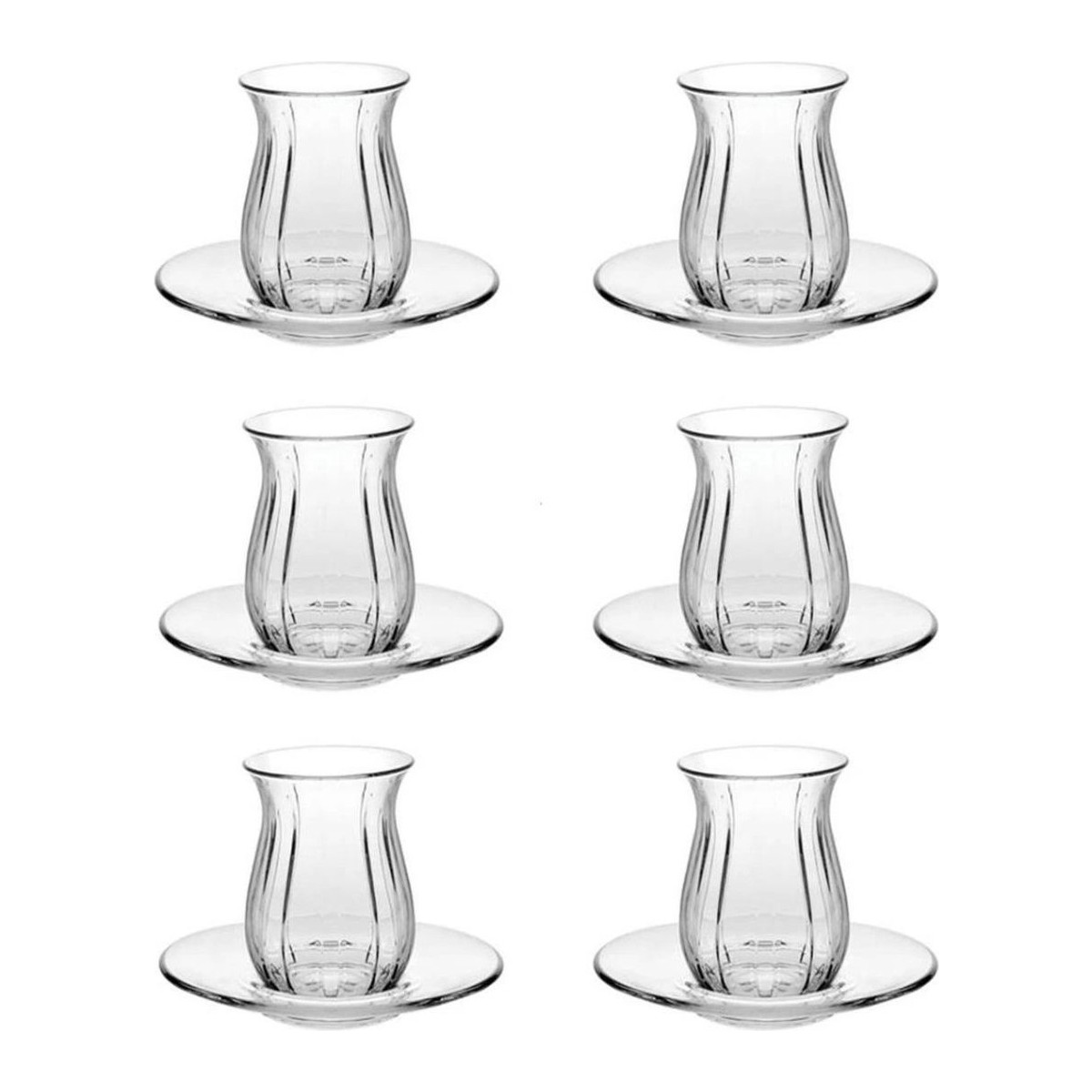 Paşabahçe Cam Desenli 12 Parça Çay Seti – Şık ve Dayanıklı Tasarım, Günlük ve Misafir Kullanımına Uygun