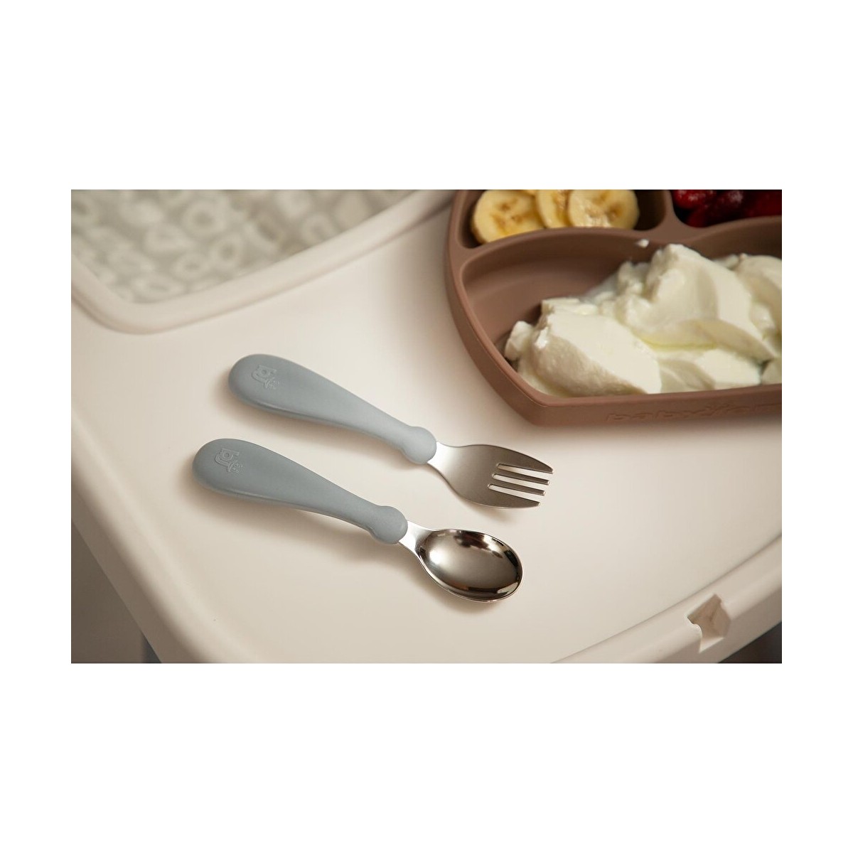 Babyjem Paslanmaz Çelik Çatal Kaşık Seti, GriBabyjem paslanmaz çelik çatal seti, çocuklar için özel olarak tasarlanmıştır.Çocuğunuz yemeğini kendi kendine yiyerek bağımsız beslenmeyi öğrenir böylelikle gelişimini desteklemeye yardımcı olur. Kaşık derinliği, çocukların porsiyonları düşünülerek tasarlanmıştır. Çatal dişleri çocuğunuzun güvenliği yuvarlak formda tasarlanmıştır, yeterince güvenlidir.Özel tasarımı ile çocuğunuzun eline tam oturur, kaymaz sapları sayesinde elinden düşmez.BPA ve fitalat içermez.Renk: Gri
