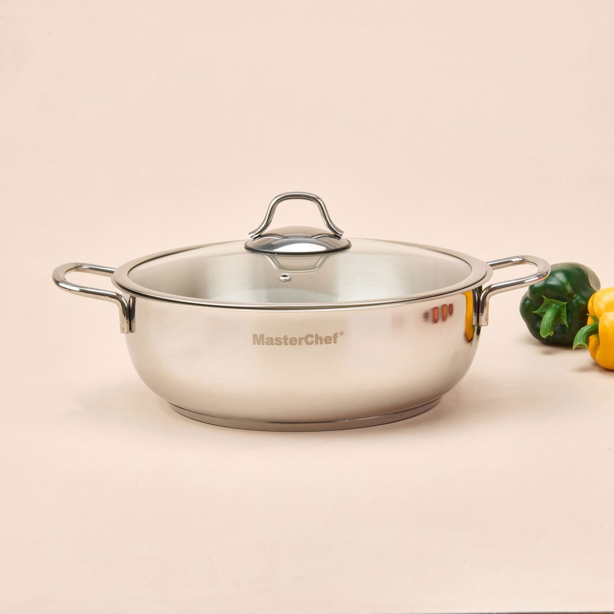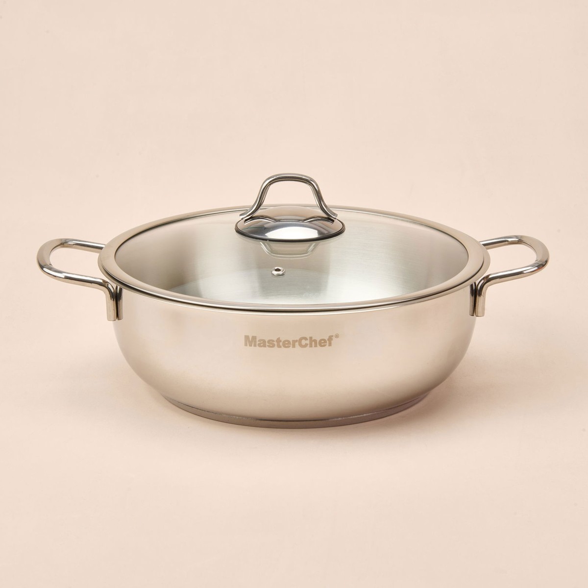Ürün ÖzellikleriMalzeme/Materyal: Cam / Paslanmaz ÇelikÖlçü: 26 cmRenk: GriMenşei: TÜRKİYE• 304 Paslanmaz Çelik 18/10 Krom Nikel Parlaklığını koruyan özenle polisajlanmış dış yüzeyler.• Paslanmaz çelik kulp, cam kapaklar• Gaz, İndüksiyon, Elektrik ve Seramik ocaklarda kullanılabilir.MasterChef Paslanmaz Çelik Karnıyarık Tenceresi, mutfağınızda hem şıklığı hem de işlevselliği bir arada sunar. Yüksek kaliteli paslanmaz çelik yapısı sayesinde uzun ömürlü kullanım imkânı sunarken, ısıyı eşit şekilde dağıtan tabanı ile yemeklerinizi daha lezzetli hale getirir.Basık formu sayesinde özellikle pilav, sote ve buharda pişirme gibi tariflerde ideal performans gösterir. Ergonomik kulpları güvenli tutuş sağlarken, şık ve modern tasarımı da sofralarınıza zarif bir dokunuş katar.Ergonomik, şık ve kullanışlı sap ve kulplarıyla kolay tutuş sağlar. Özel tasarım cam kapağı ile oldukça dayanıklıdır.Kullanım ve Bakım Bilgileri• Ürünün elde yıkanması tavsiye edilir.•