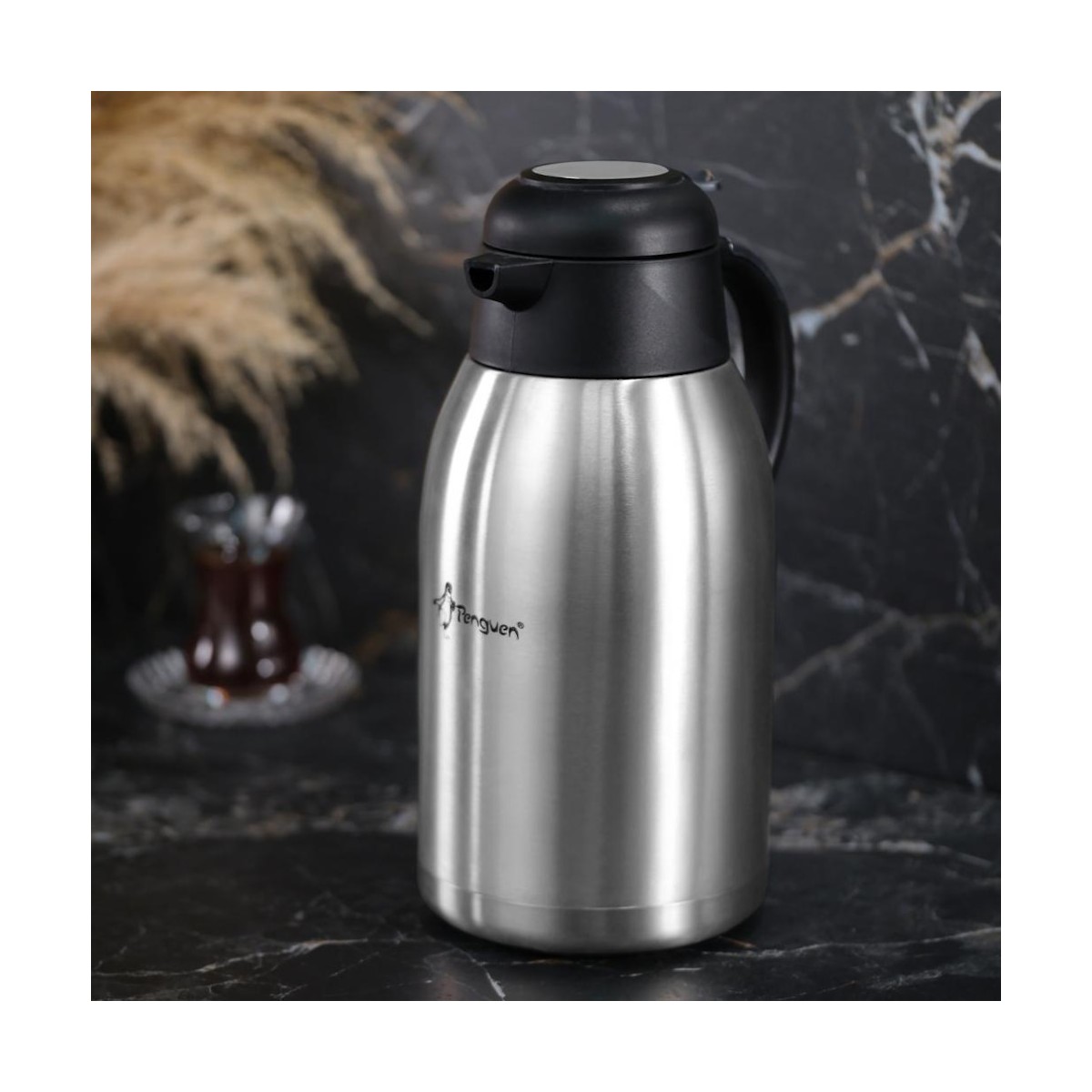 Kolay kullanımıyla günlük hayatınızda ne zaman canınız çay, kahve ya da soğuk/sıcak su isterse yanınızda bulundurmanızı sağlayan mükemmel bir ürün. 2.5 litrelik geniş haznesi ve içeceğin sıcaklığını ve soğukluğunu uzun süre muhafaza eden yapısı sayesinde bu termos, her alanda sizinle. Ergonomik olarak tasarlanmış kilit mandalı ile hiçbir sızıntı yapmadan kolayca taşıyabilirsiniz, içecekleriniz 12 saate kadar sıcak, 24 saate kadar soğuk tutar. Evde, piknikte, ofiste, bahçede, doğa yürüyüşlerinde rahatlıkla kullanabilirsiniz. Malzeme : Paslanmaz Çelik Kapasite : 2.5 Litre iç ve dış bölümü çelik iç kısmı prüzsüz düz çift katlı hem sıcak hem soğuk içecekler için uygundur ürün yüksekliği: 30 cm