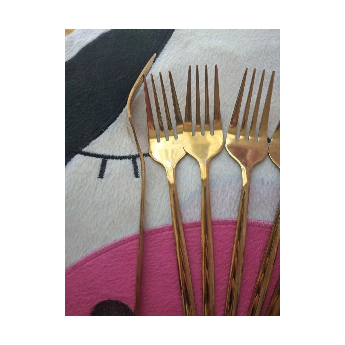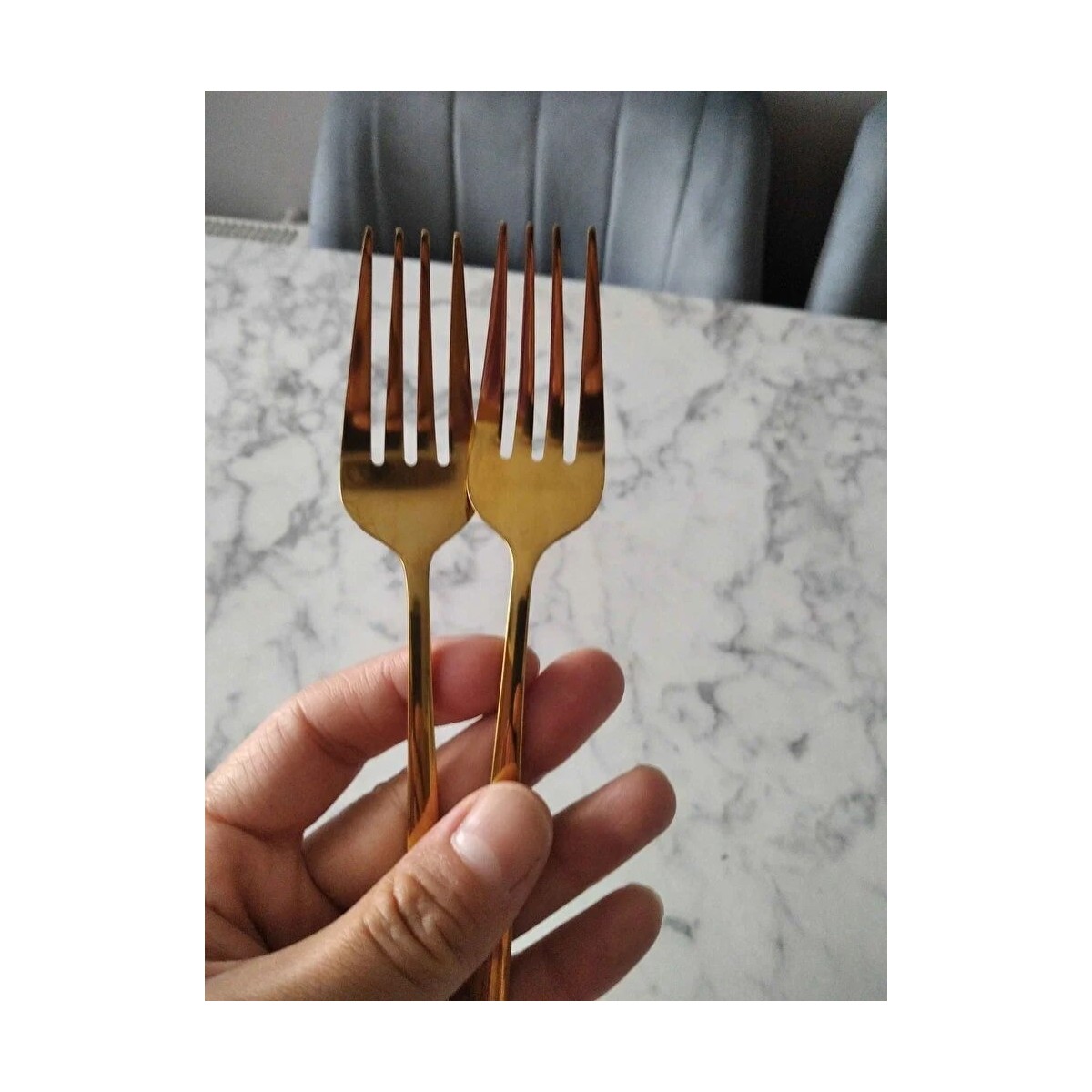 6 Adet Lüx Şık Paslanmaz Çelik Gold Titanyum Kaplama Yemek Çatalı