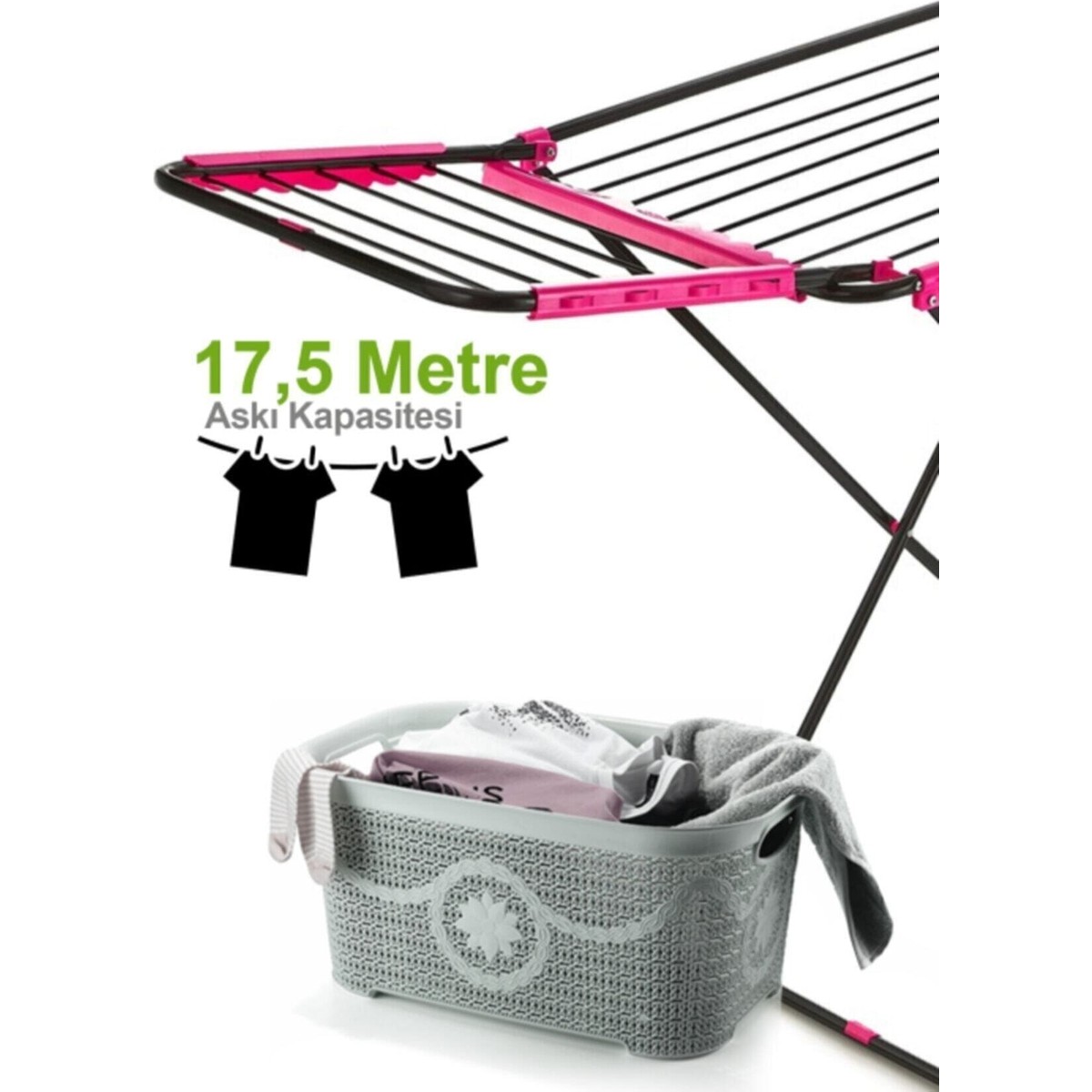 Şimdi Çamaşır asmak ve kurutmak çok kolay, 17,5metre çamaşır asma kapasitesi ile ev içinde ve kompakt boyutları ile isterseniz balkonunuzda bir kaç saniye içerisinde kullanıma hazır hale gelmektedir özel paslanmaz yüzey ve boyası ile uzun yıllar güven konfor ve sağlamlıkla kullanabilirsiniz.