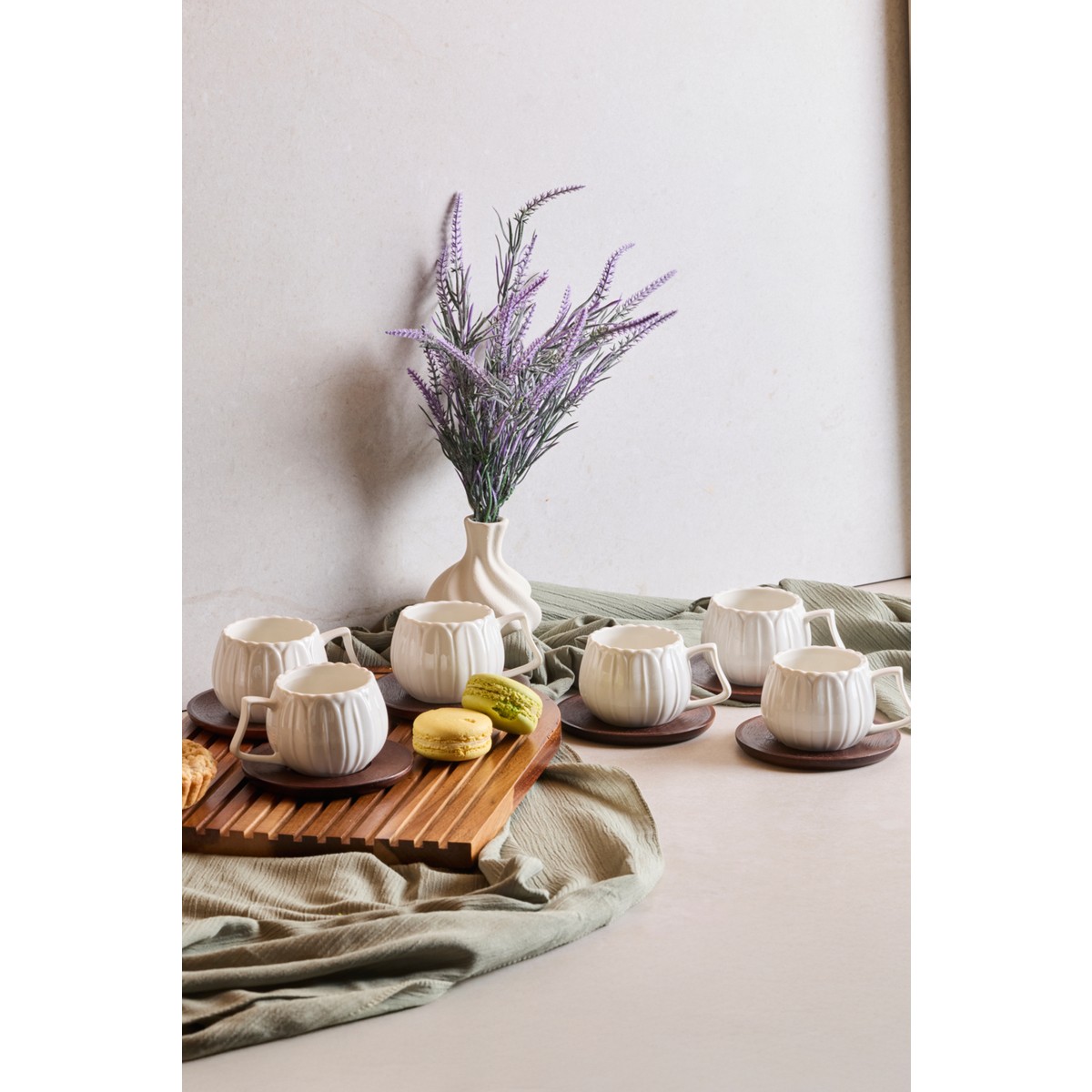 • Set İçeriği: 6 adet kahve fincanı, 6 adet akasya tabak 90ml